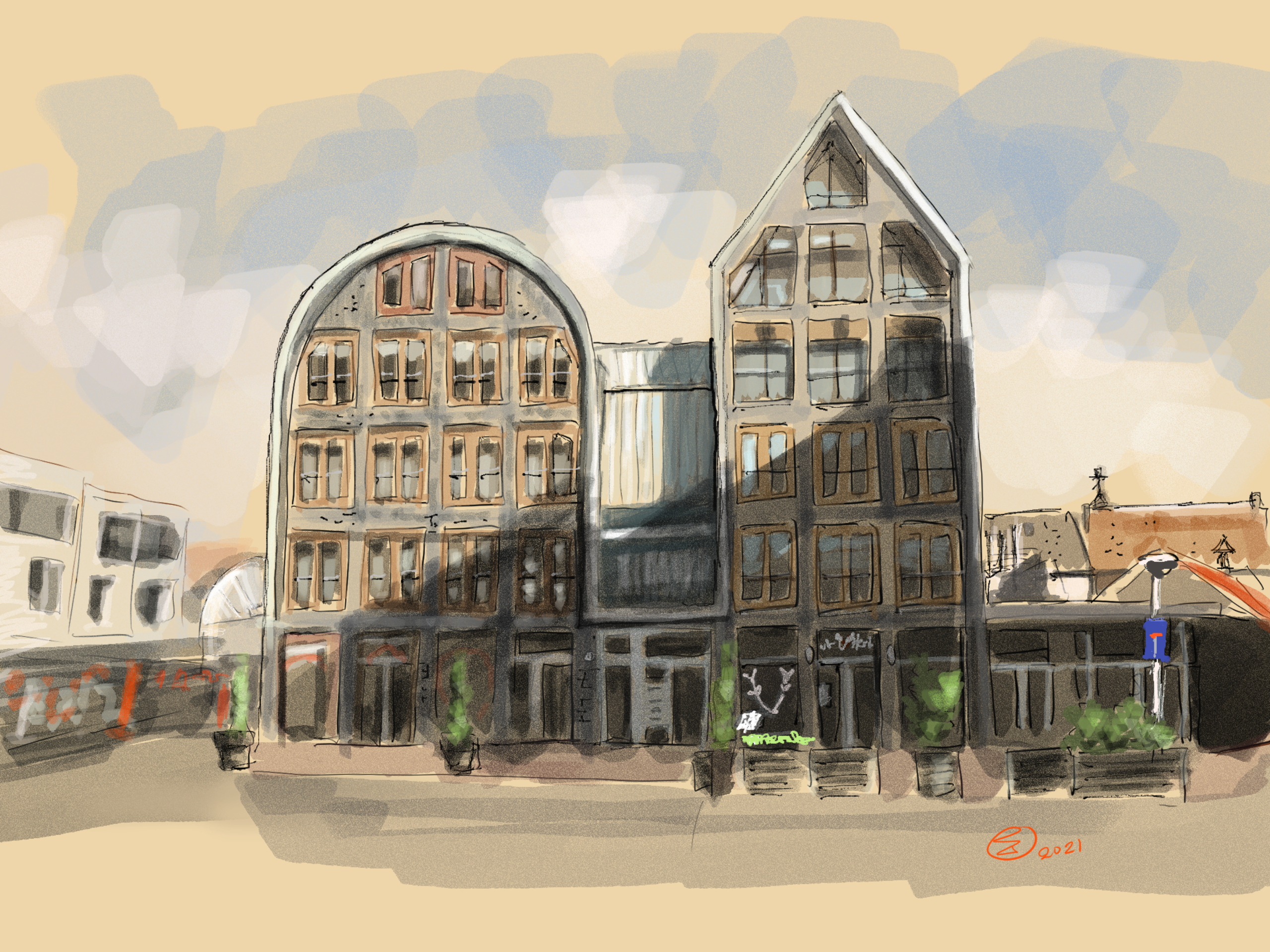 Lespompiers Blerick Netherlands Huubsimons Housesketching Citydrawing