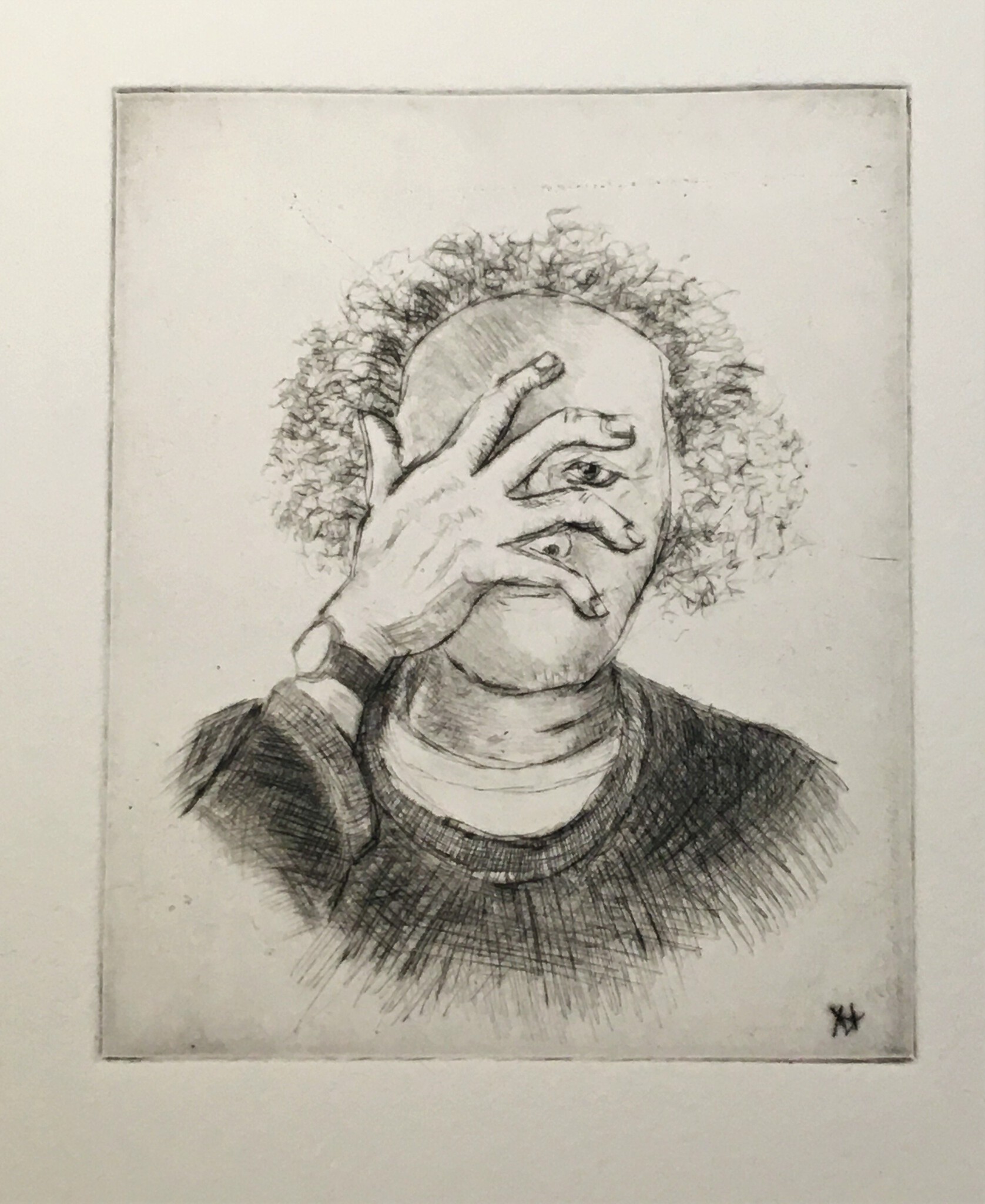 Als graficus werk ik voornamelijk figuratief in de technieken houtsnede, ets en mezzotint. Poëzie, het absurde, humor, mysterie en een fascinatie voor wat mogelijk is binnen kaders, spelen een rol in mijn werk.