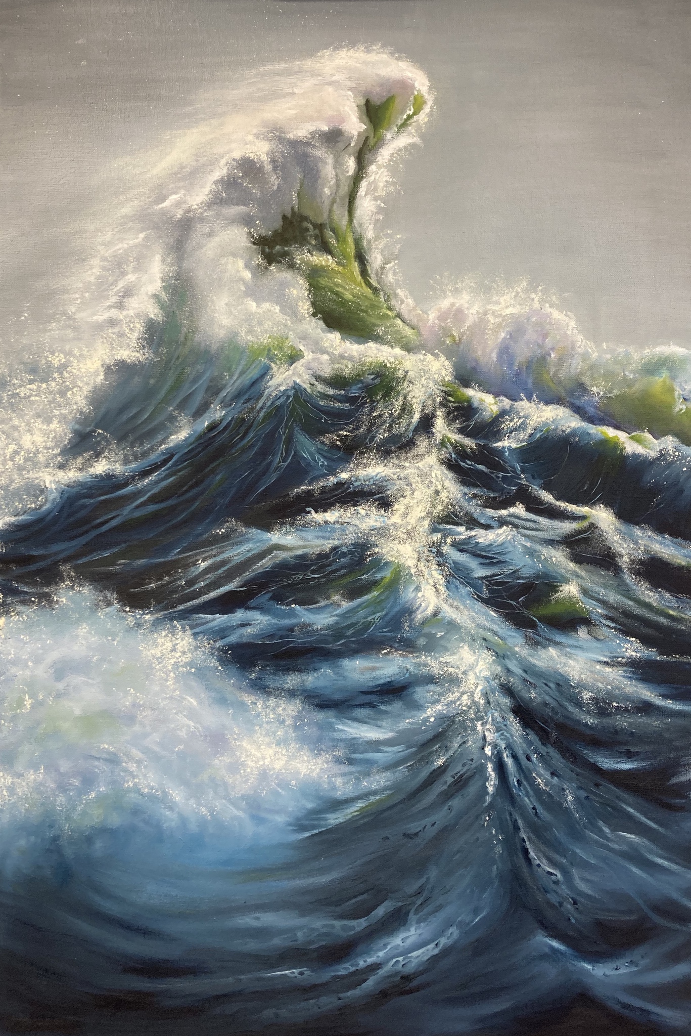 Majestueuze golf die de kracht van de natuur laat zien. Olie.