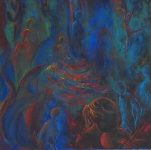 mixed media: acryl, houtskool, siberisch krijt, pastelpotlood