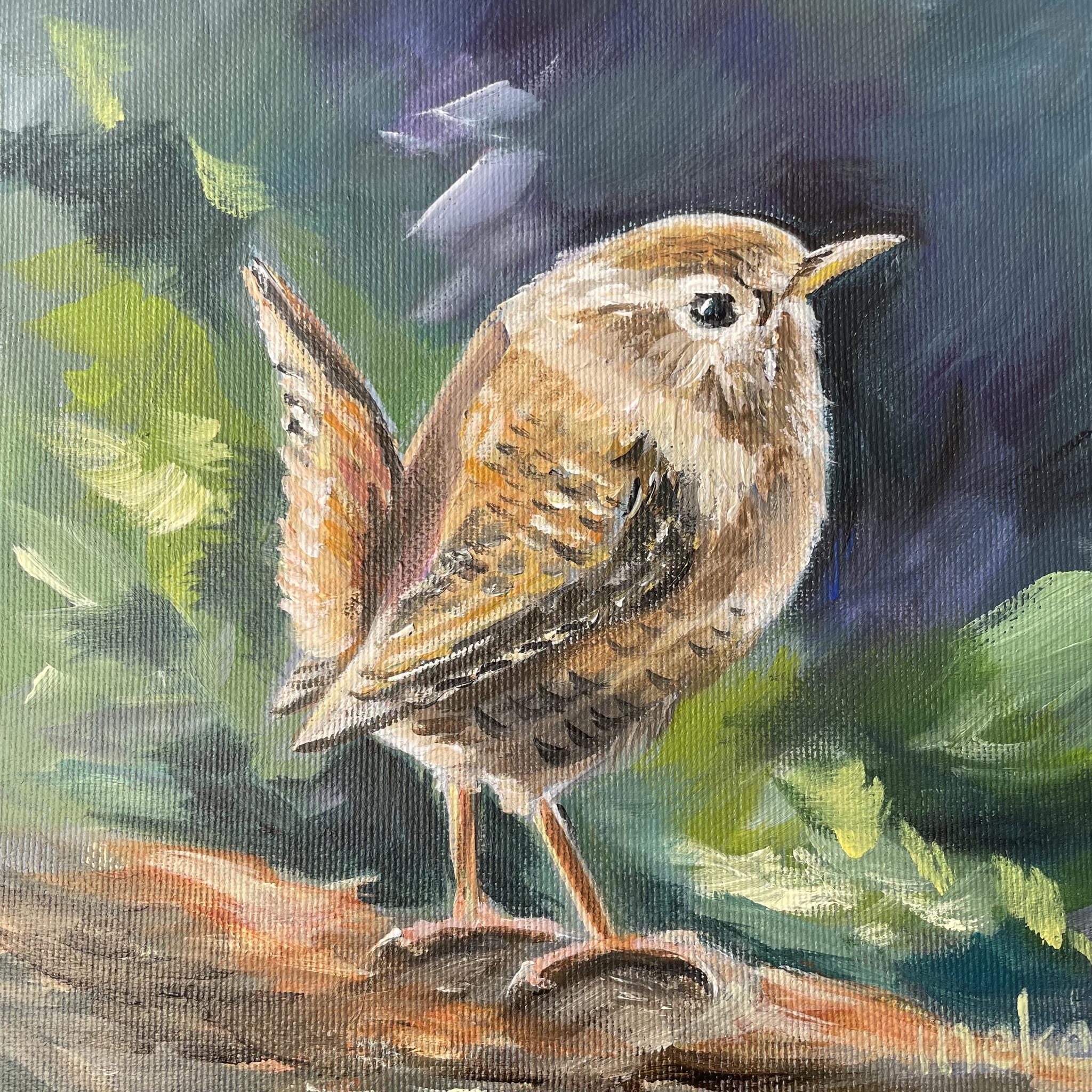 Vogel Kunst Acrylverf Winterkoninkje Winterkoning Vogelschilderij