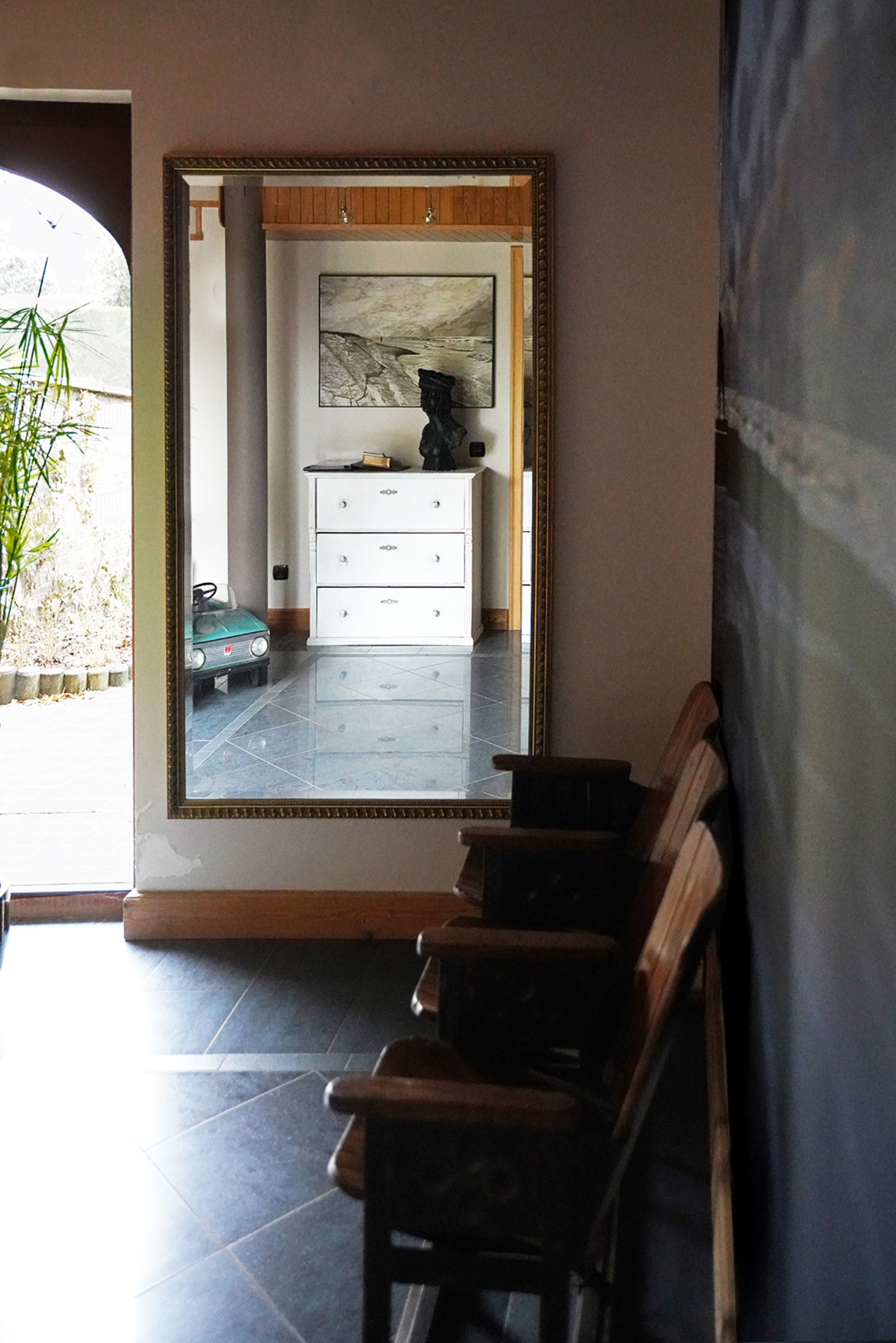 Is fotografie kunst ? Als ik naar het werk van Lut Moerenhout kijk, zeg ik volmondig ja. Moerenhout doet meer dan het louter registreren van werkelijkheid, zij creëert haar eigen realiteit. Zij mààkt beelden. Ze interpreteert, voegt toe en ontwikkelt zo een eigenzinnige beeldtaal die het “mooie plaatje” an sich, overstijgt. Moerenhout bedient zich van het medium fotografie zoals een schilder van verf en penseel. Dat leidt tot beelden die niet esthetiserend zijn maar ons integendeel vaak confronteren. Confronteren met eenzaamheid, ontreddering maar ook met schoonheid en details die de doorsnee-toeschouwer uit het oog dreigt te verliezen. Moerenhout merkt op, legt vast en gaat dan aan de slag. Architectuur- en landschapslijnen worden plots de contouren van een kooi of net een uitdage