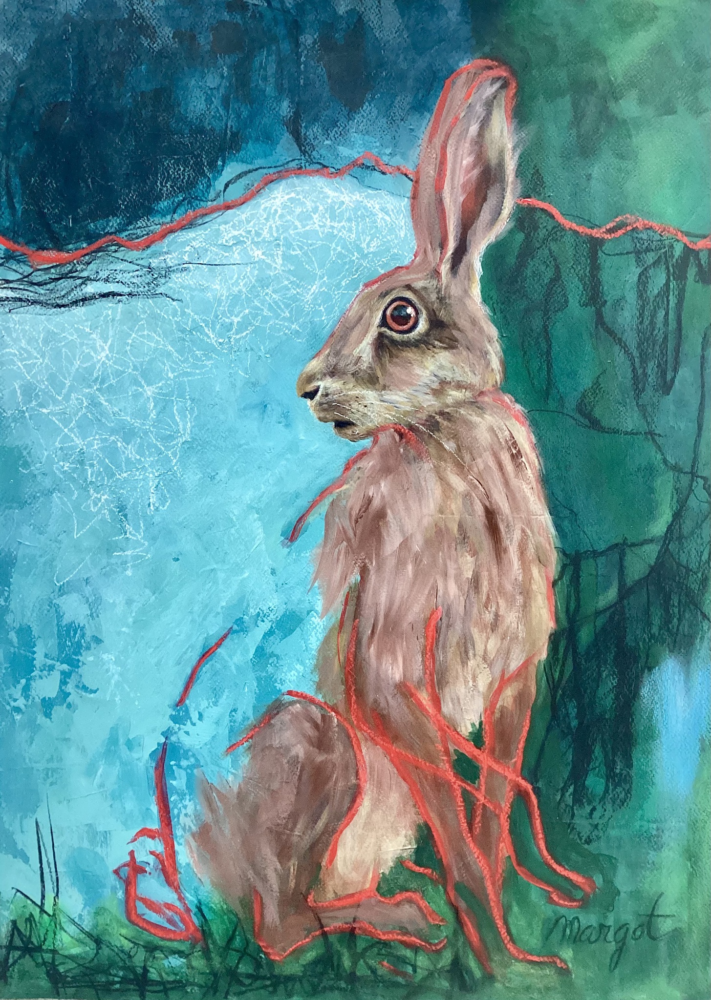 Margot kan zich niet tot één stijl beperken. Ze flitst van portretten naar collages naar abstractie naar illustraties. Het is maar net hoe de pet staat. Maar één ding staat vast: kunst is haar passie!