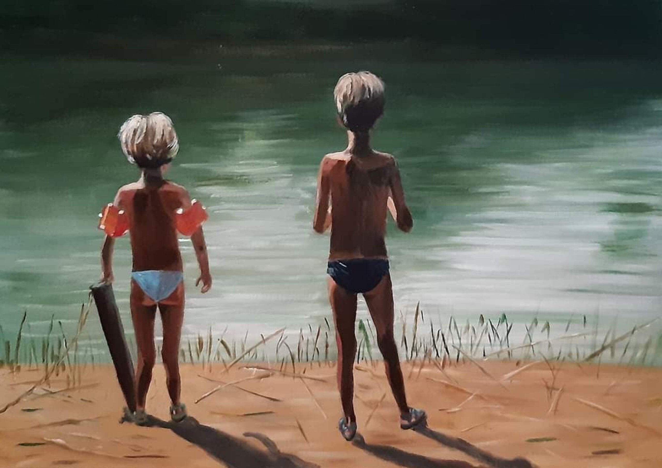 A en C langs de Linge, destijds 6 resp. 4 jaar oud