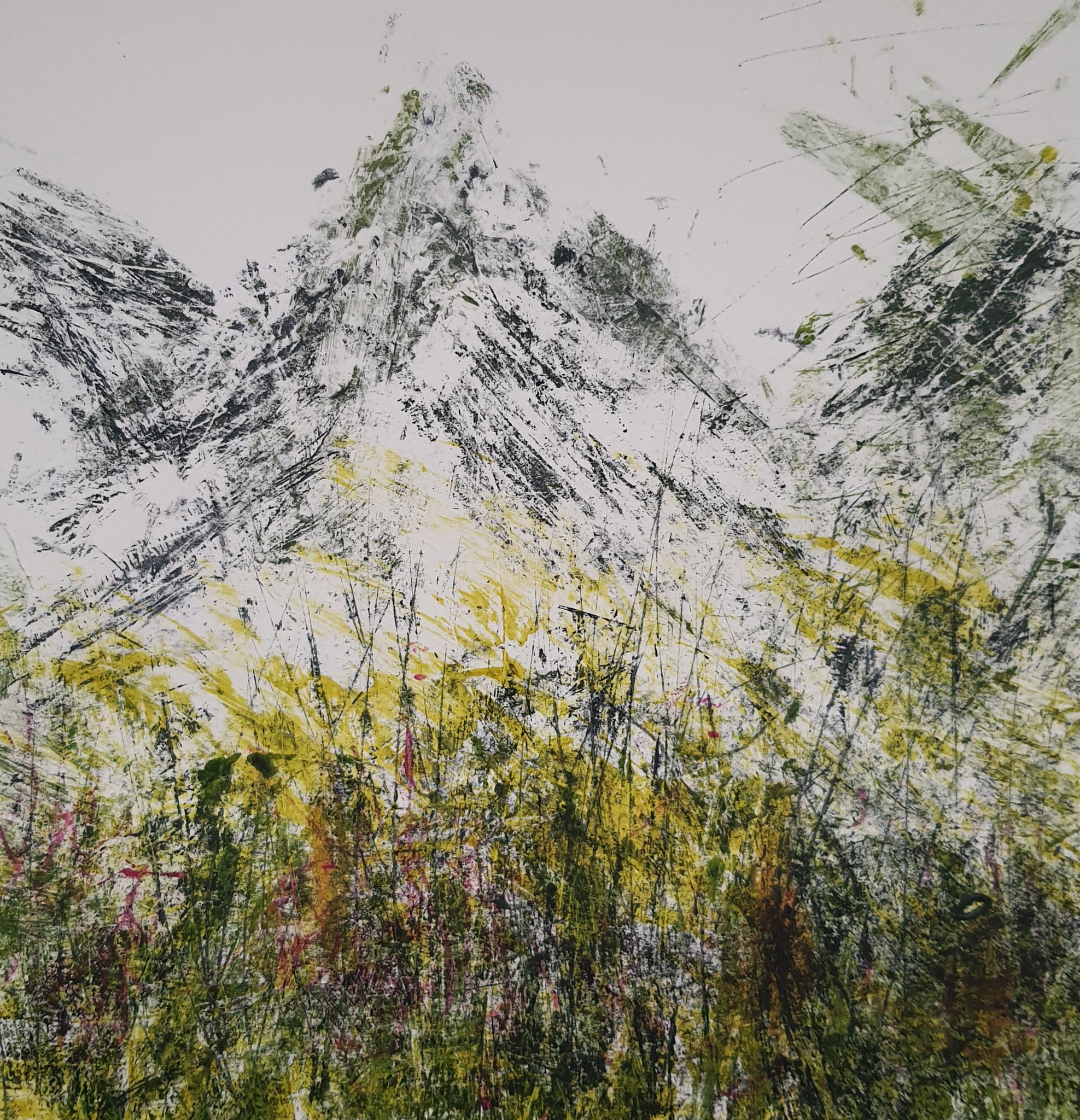 Abstract Bergen Alpen Monoprint Abstrakt Bloemenweide