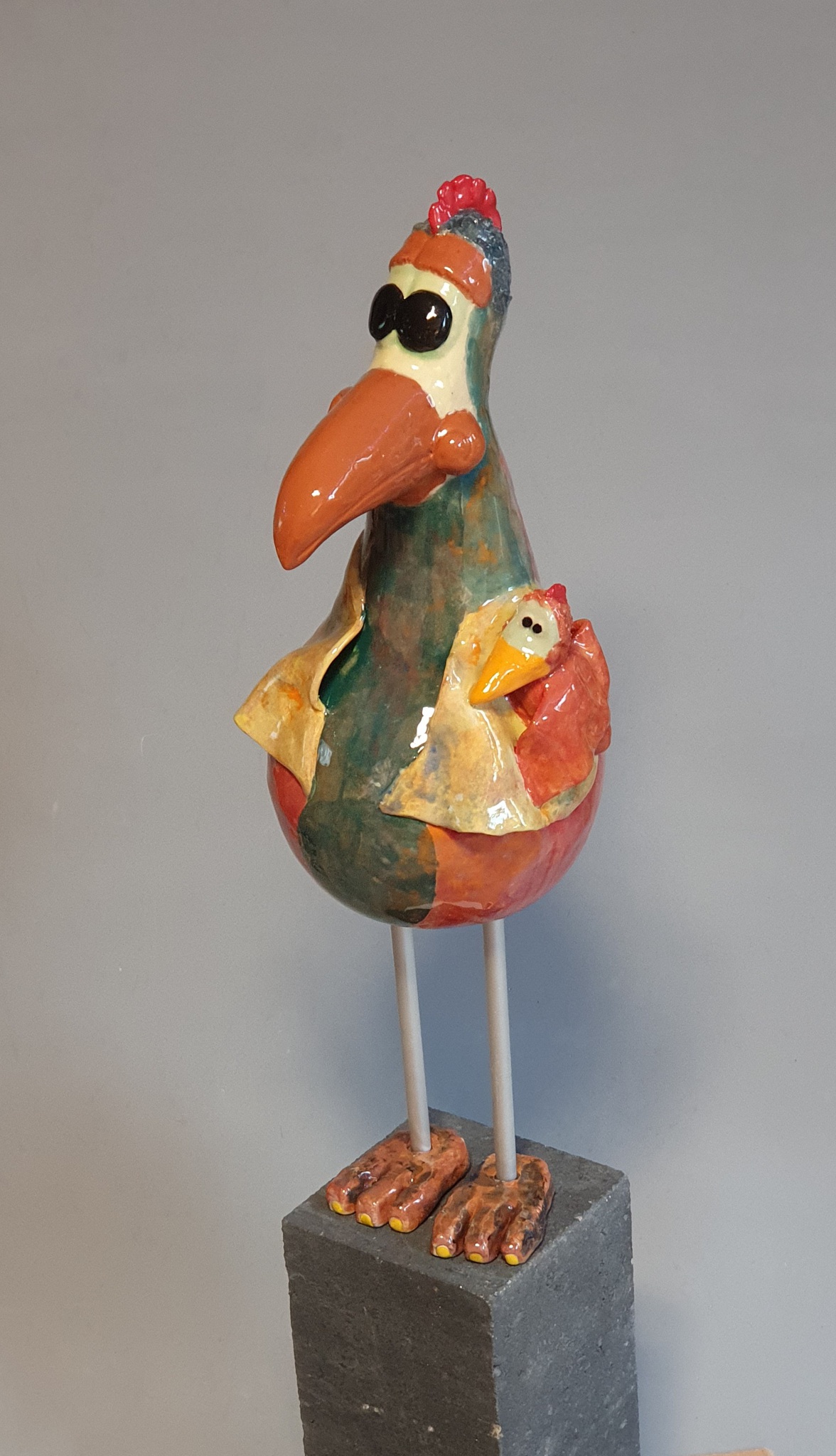 Vogel Bleijenberg Tom Keramiek Klei Kleurrijk Kleurig Vrolijk Grappig Teder Vertederend Lief Uniek Glimlach Kleur Fel Rood Zwart Steengoed Gebakken Groen Blauw Winterhard