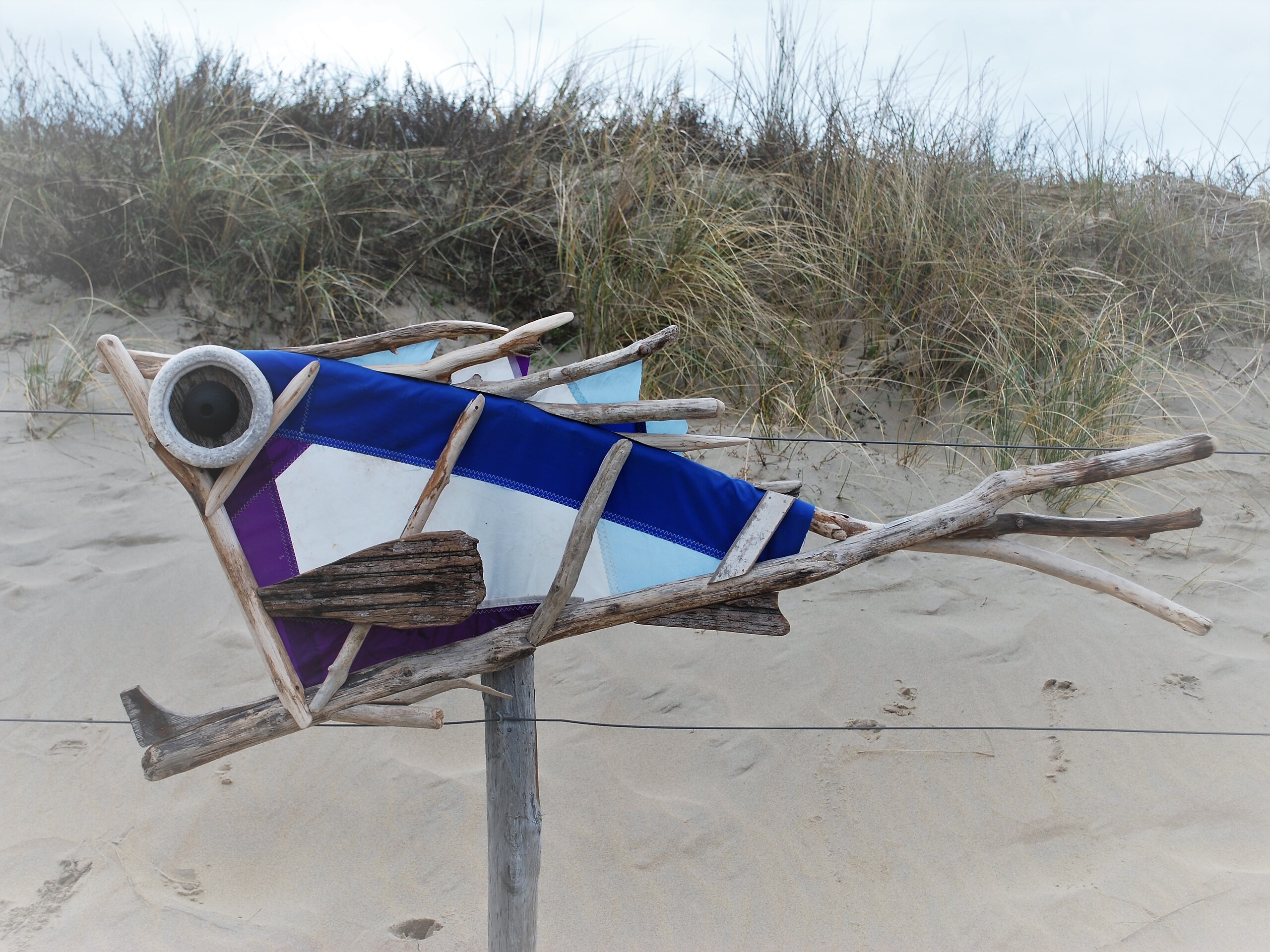 maakt al jaren houten beelden door natuurlijke objecten uit zee te koppelen. De beelden zijn ruw en puur.