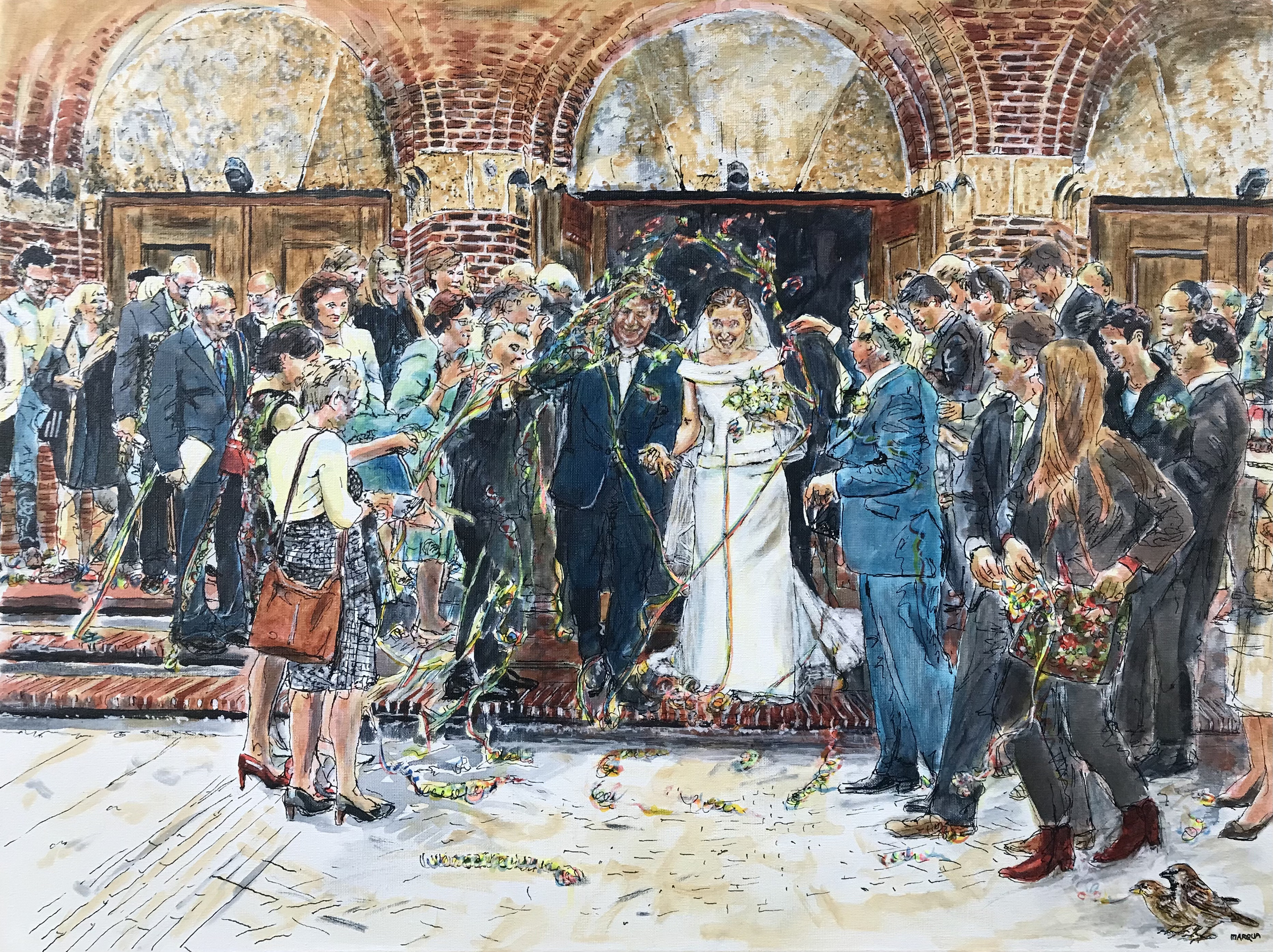 Inktschilderij Bruiloft, in opdracht gemaakt