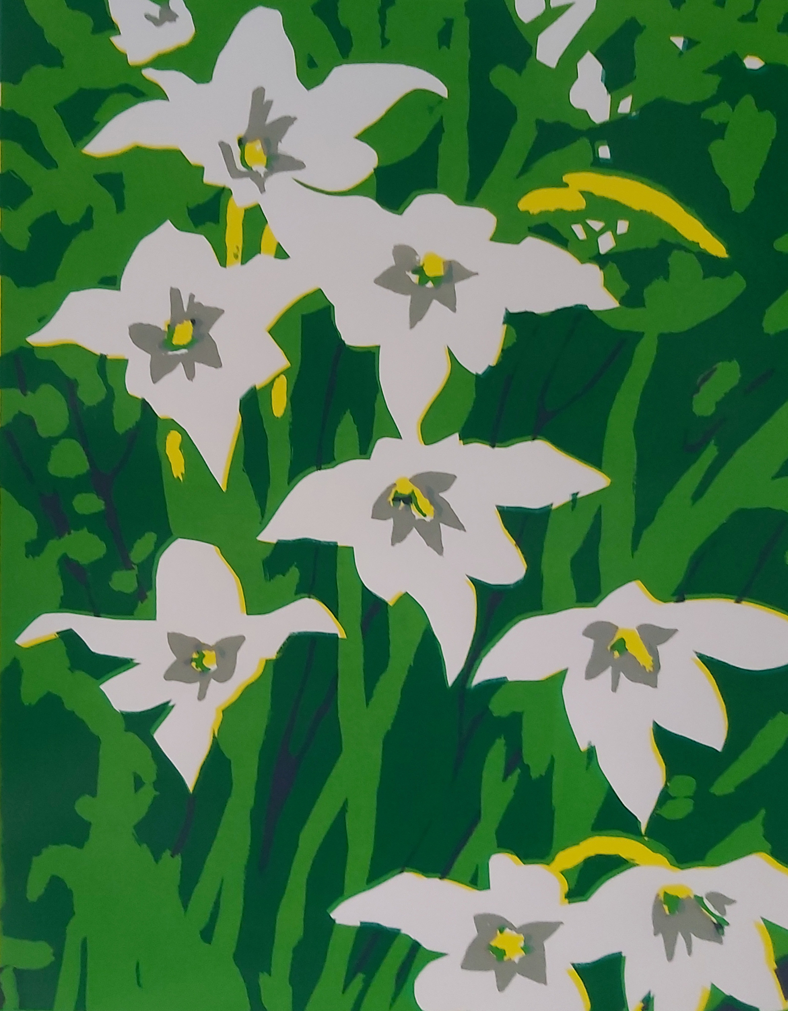 Wit Grijs Geel Bloemen Lelie Zeefdruk Lichtgroen Donkergroen Handgemaakte