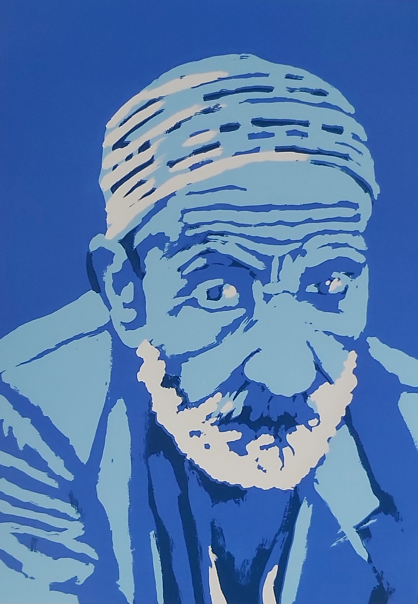 Marokkaanse man, handgemaakte zeefdruk. het papierformaat is 66 x 49 cm. Beeldformaat is 37 x 27 cm. De oplage is 20 stuks. Leverbaar met of zonder lijst.
