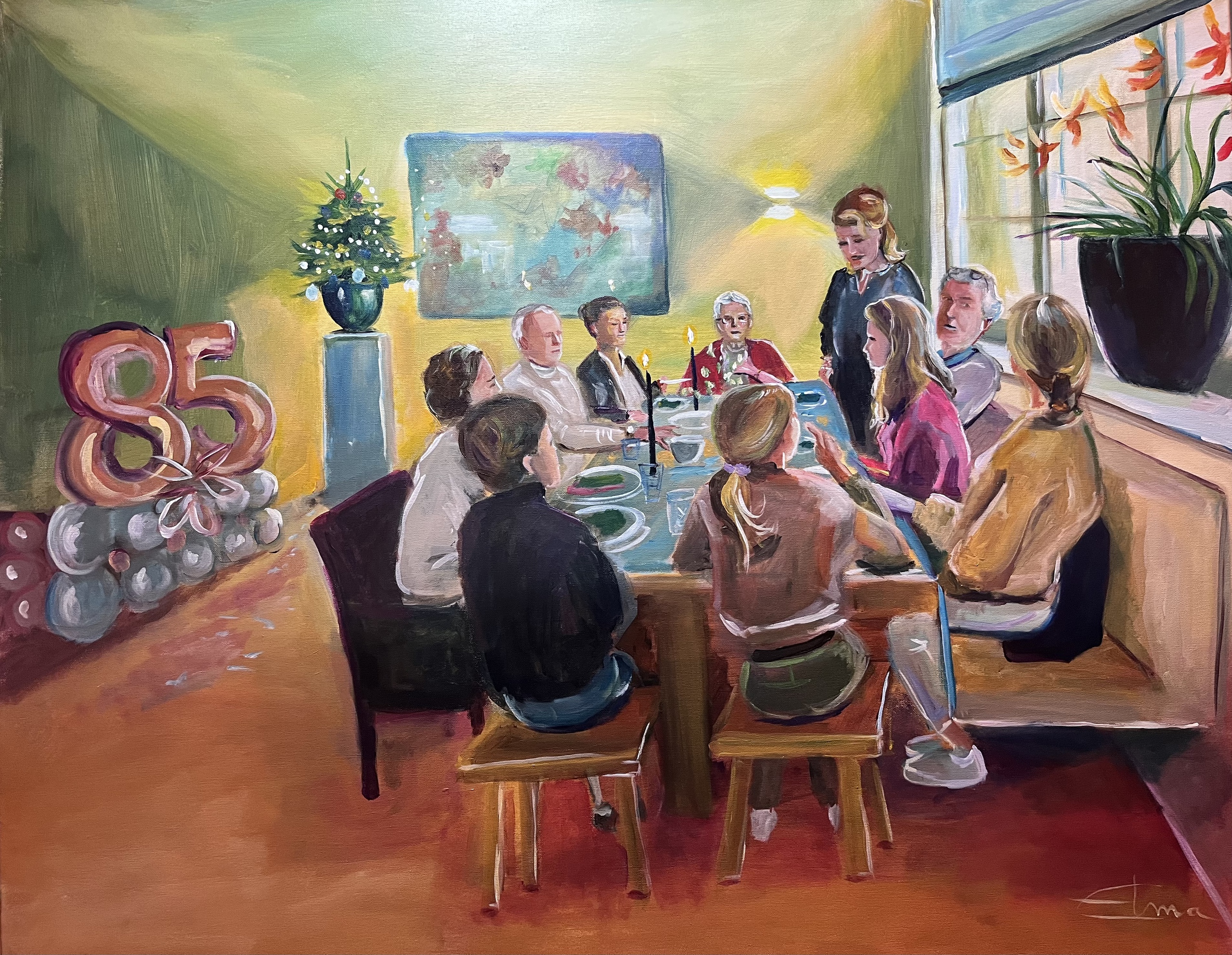 Familiefeest, live tijdens het samenzijn geschilderd i.s.m. @feestopdoek