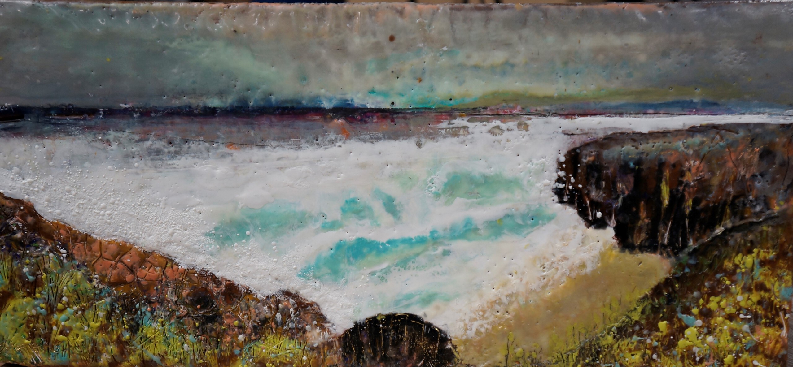 Blauw Natuur Zeegroen Rotsen Golven Bijenwas Wax Encaustiek
