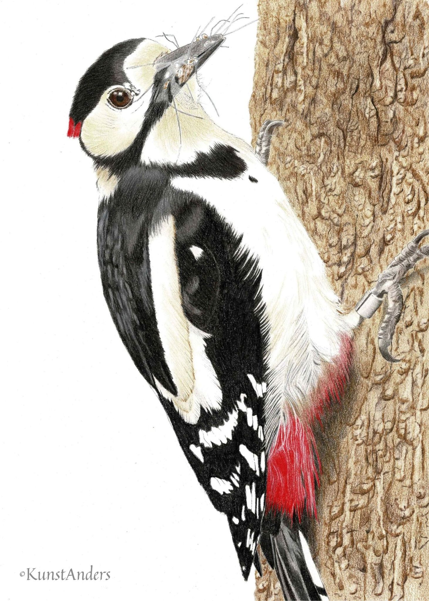 Wildlife Dieren Natuur Inkt Pen Vogels Specht Kleurpotlood Pentekening Grotebontespecht Fabercastell Kunstanders