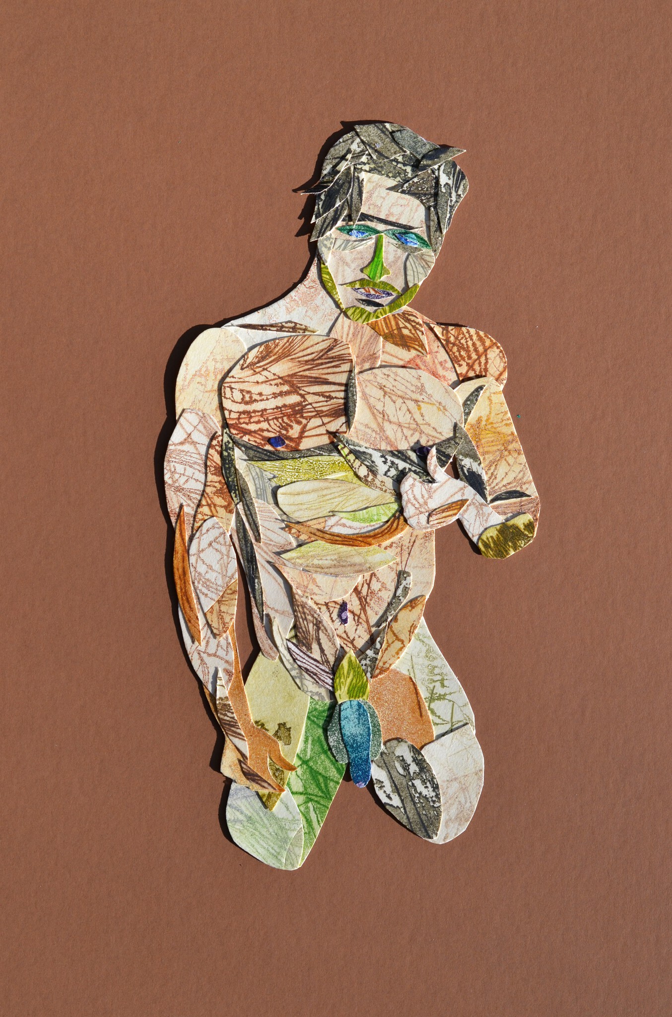 Dylan - collage van verknipte drukken vam mijn vroegere etsen - collage réalisé avec mes anciens gravures découpées - collage made from my earlier prints - edition 1/1 - 34 x 18 in passepartout 50 x 40 cm.