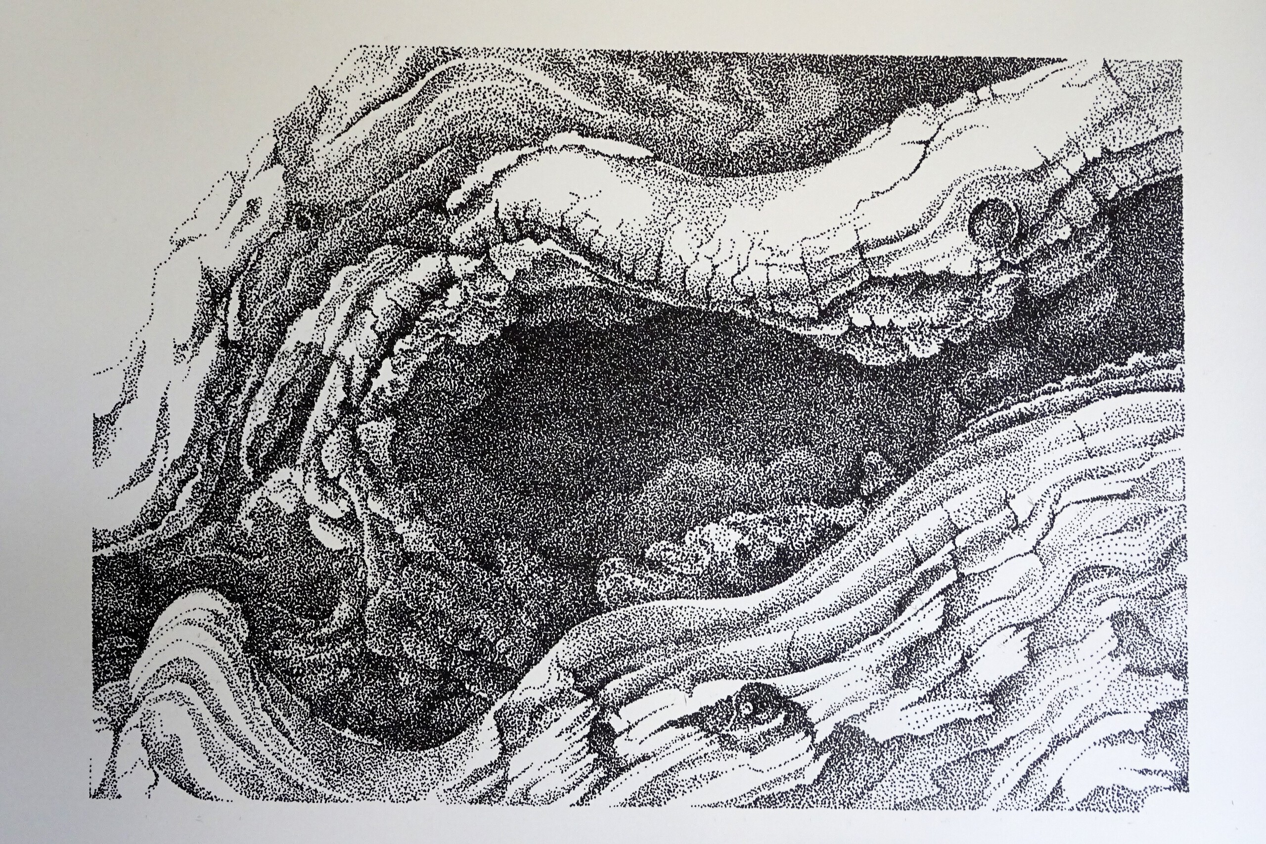 Maakt voornamelijk landschapselementen met voornamelijk bomen als thema en inkt en kleurpapier