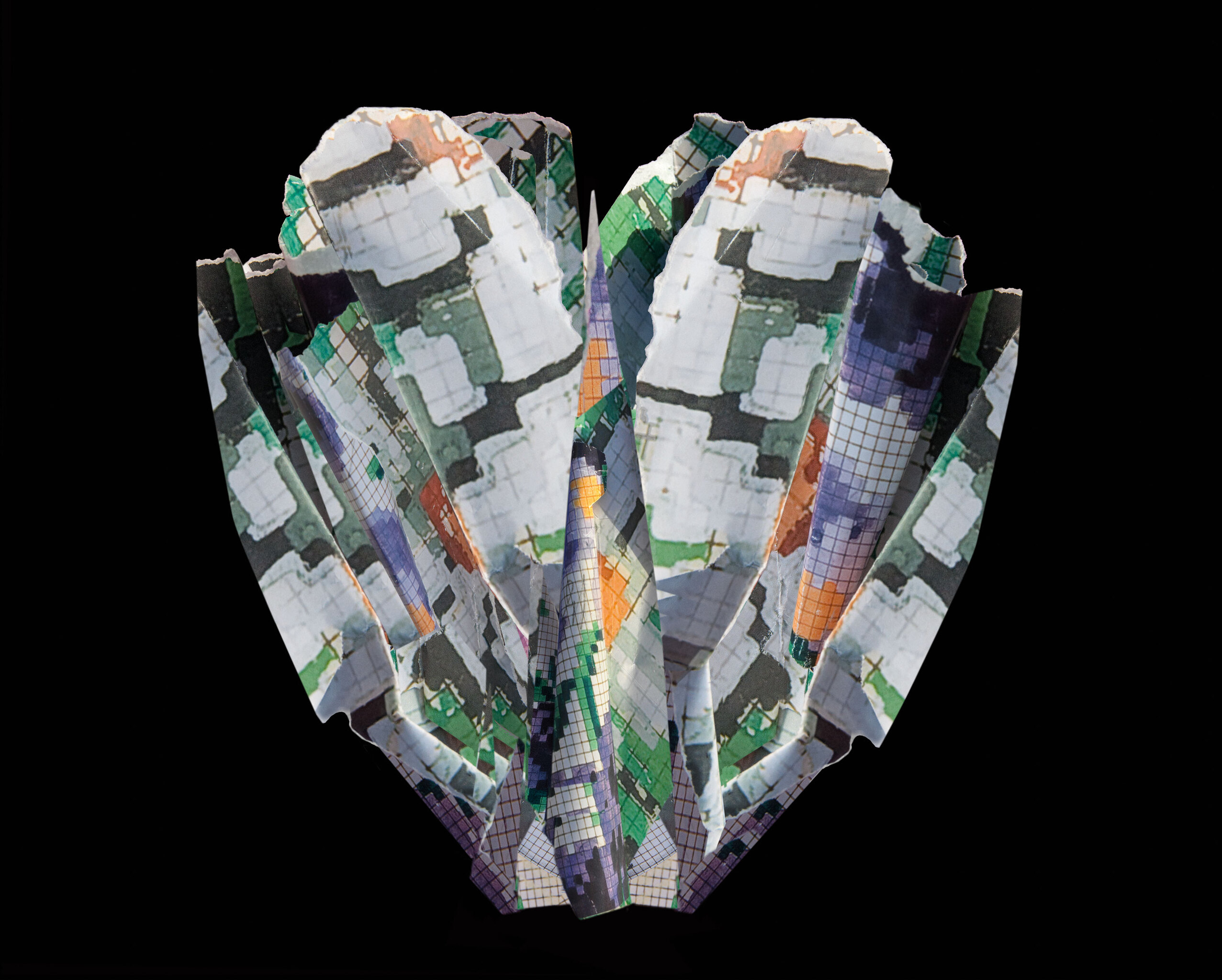 Ik maak collages, die opvallen door een bijzonder materiaalgebruik. In mijn werk combineer ik bijvoorbeeld papier, textiel, stokjes, messing en aluminium. Soms bewerk ik deze materialen weer om ze een eigen uitstraling te geven. Mijn inspiratie vind ik in Japanse vormgeving en de natuur.