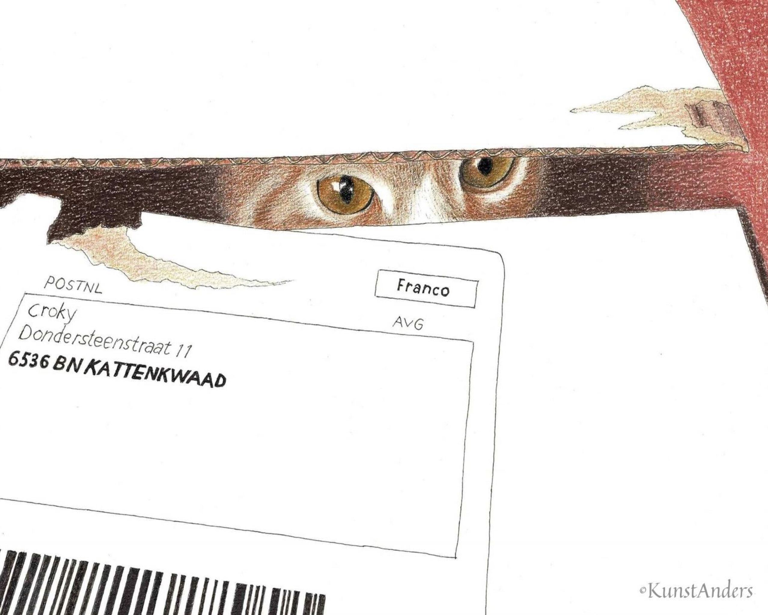 Portret Kat Tekening Poes Huisdier Pentekening Kunstanders