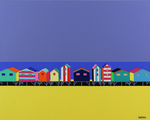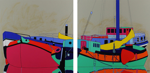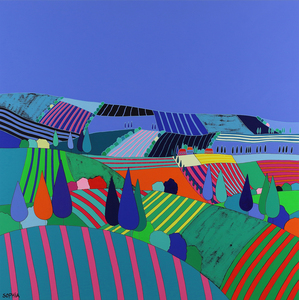 Een sterk versimpeld werk met strakke lijnen. Het schilderij is afgewerkt met een laag vernis. De zijkanten van het werk zijn meegeschilderd. Het schilderij heeft een houten frame met ophangkabel.