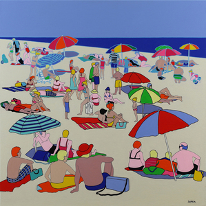 Wit Zee Zon Strand Abstract Figuratief Modern Rood Oranje Geel Zwart Blauw Groen Kleurrijk Roze Vergezicht Vrolijk Strak Zomer Lijnen Speels Hedendaags Zeegezicht Magenta Naief