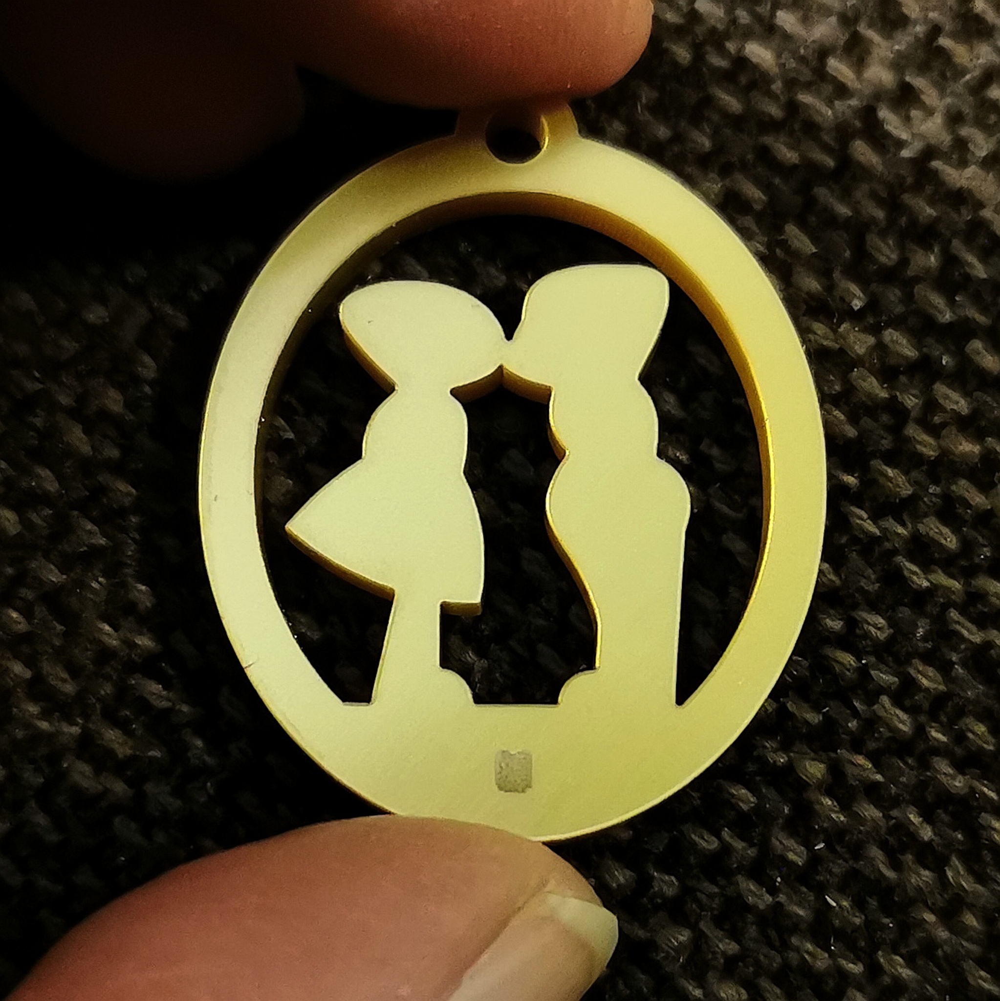 Hanger uit de serie KISSING PAIRS is uitgevoerd in lasergesneden en lasergegraveerd acrylaat. De hanger kan in diverse afmetingen en kleuren uitgevoerd worden.