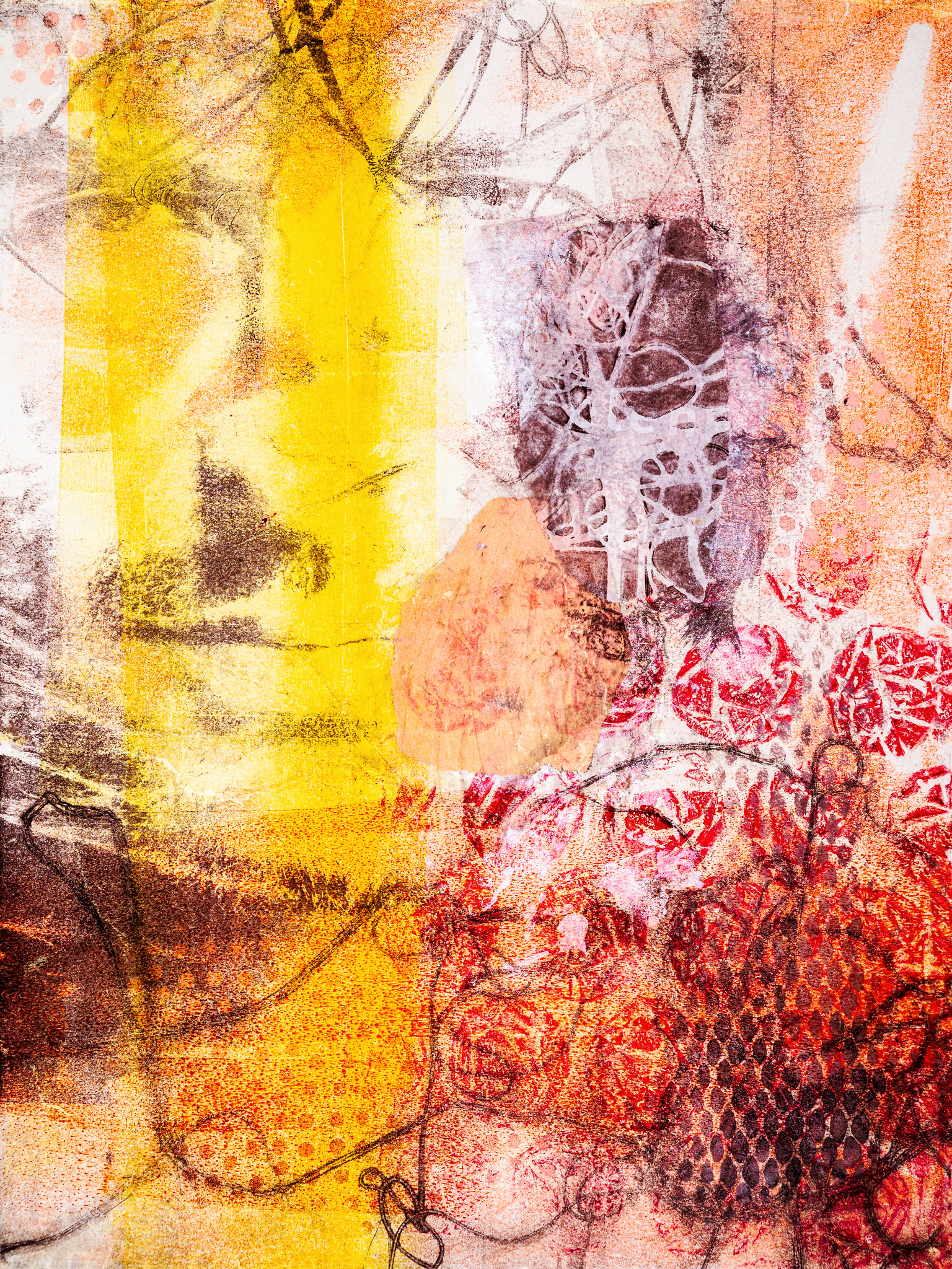 Man Portret Abstract Monotype Monoprint Rood Oranje Geel Bruin
