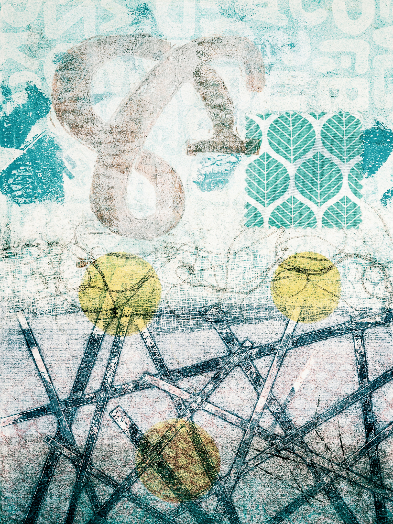 Monoprint Monotype Abstract Blauw Groen Lijn Cirkel Abstracte_kunst