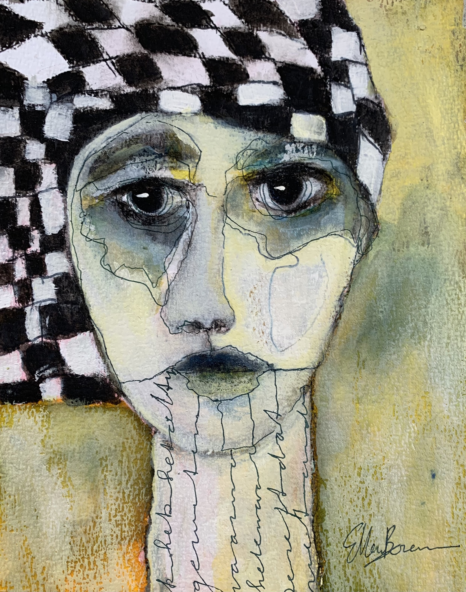 Ellen Berens (1960). Haar sterfelijkheid is wat haar bezighoudt in het leven, het gaat over vooruitgang door loslaten en anders denken en het erkennen van verliezen. Zij is een echte expressionist en staat voor het 'uitdrukken' van gevoelens. Ellen maakt met haar hoofd en handen wat er speelt in haar hart, na de diagnose ongeneeslijk kanker, dit is terug te zien in de schilderijen die ze maakt. Haar schilderijen hebben altijd meerdere lagen, zoals ook haar leven. Haar veelzijdigheid levert verrassende resultaten op. De combinatie van passie, articiteit en haar visie op het leven, maakt dat haar schilderijen symbolisch zijn met sprekende kleuren in harmonie met het onderwerp. Naast ervaringsdeskundige rond kanker is Ellen gediplomeerd in Creatieve therapie en Verlieskunde.