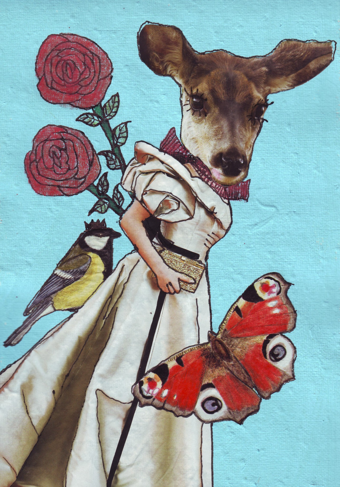 Lichtblauw Collage Hert Baljurk Vlinder Roos