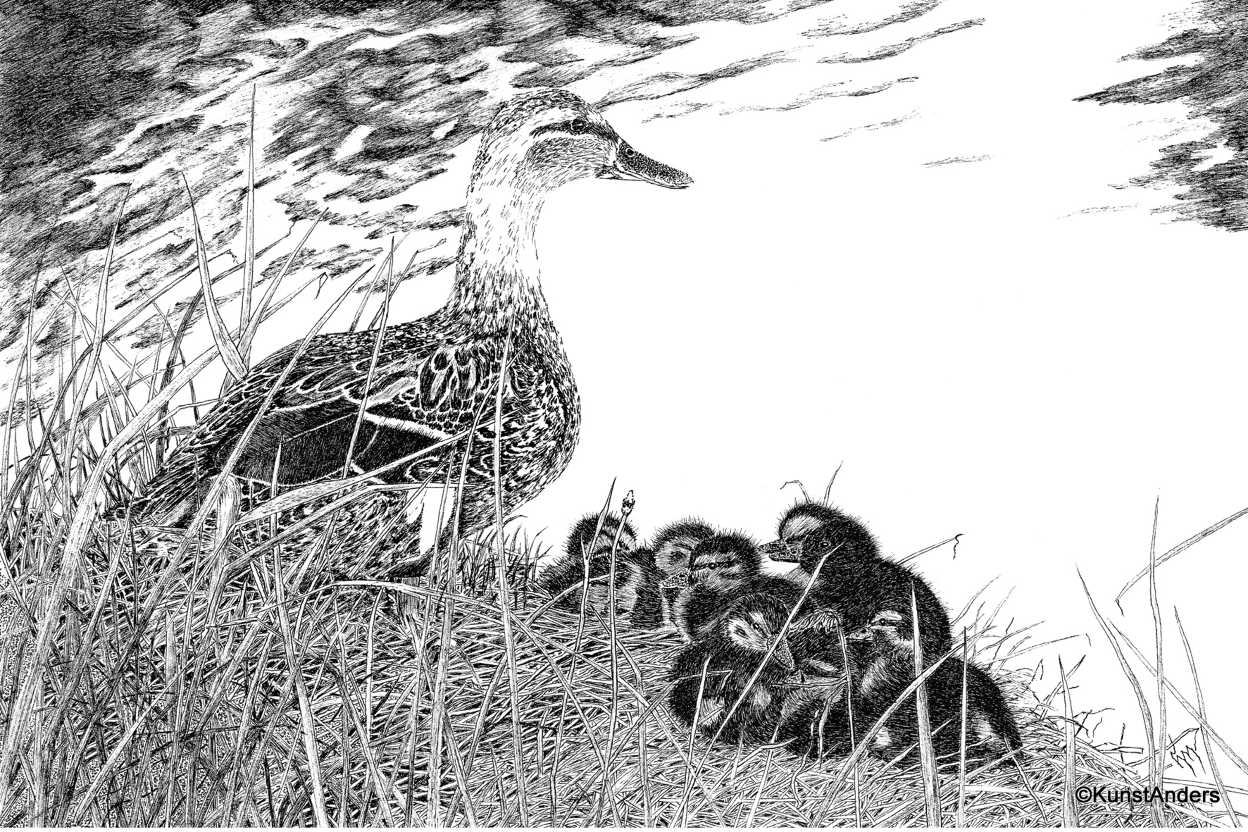 Wildlife Dieren Natuur Lente Vogels Voorjaar Eend Pentekening Tekenpen Derwent Staedtler Kunstanders Pulletje