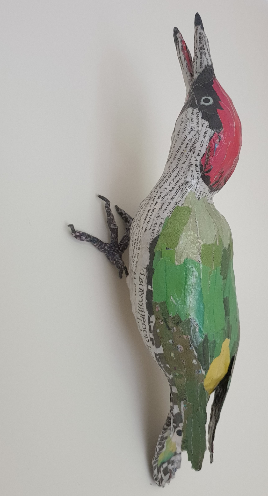 Vogel Specht Groene Woodpecker Birdart Recycle-kunst Birdsculpture Papier-machékunst