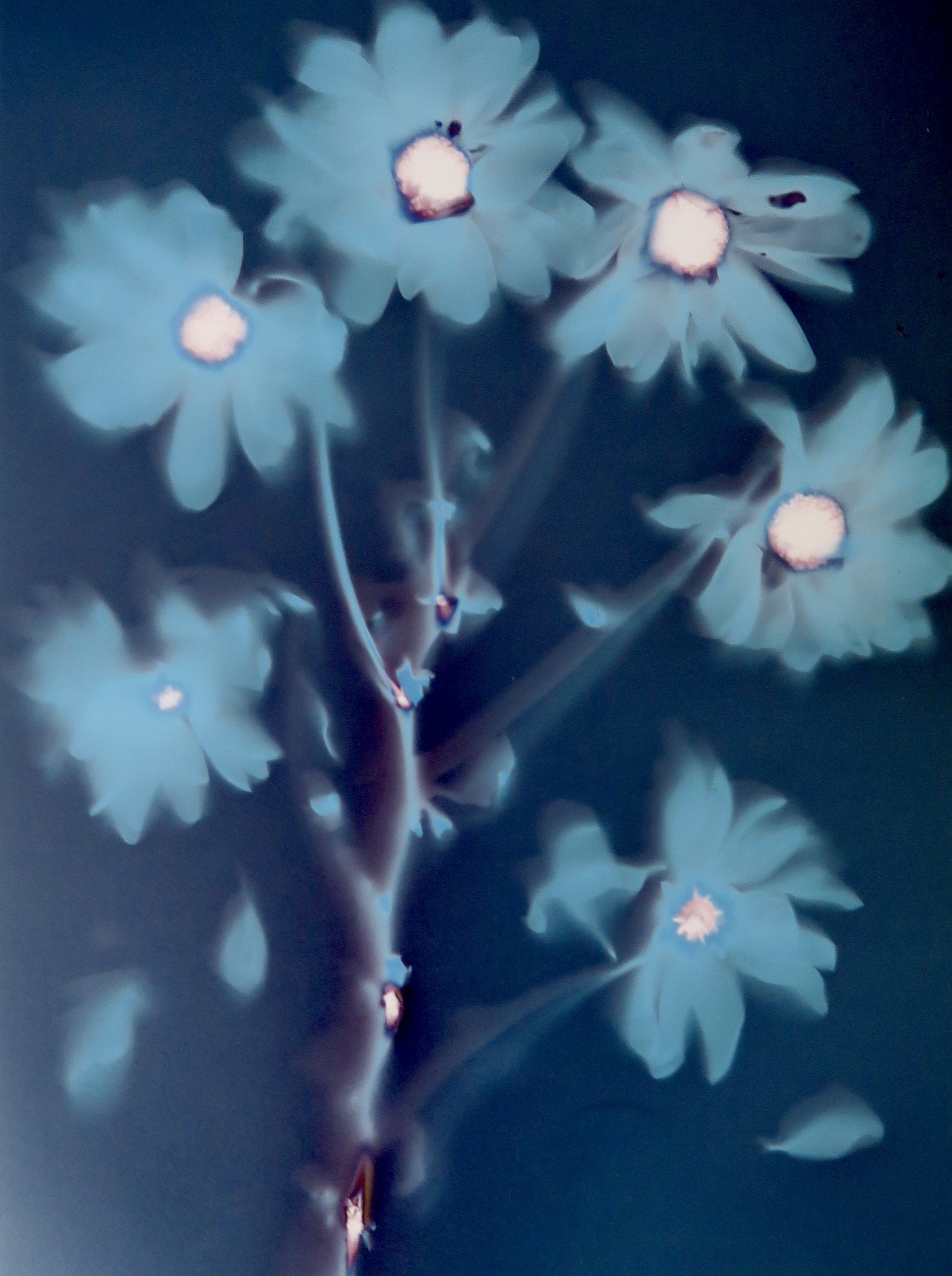 Fotografie Altfoto Experiment Lumen Print Margrieten Blauw Paars Wit Voorjaar Cameraless Fotogram
