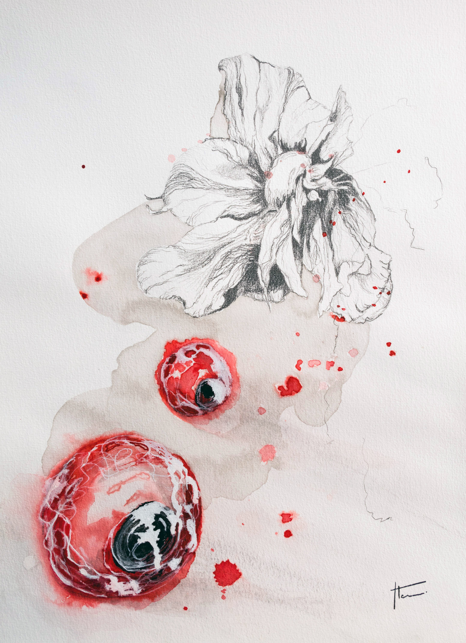 Surrealisme Potloodtekening Mixedmedia Pioen Pencildrawing Abstractart Piony Manonvanleuven