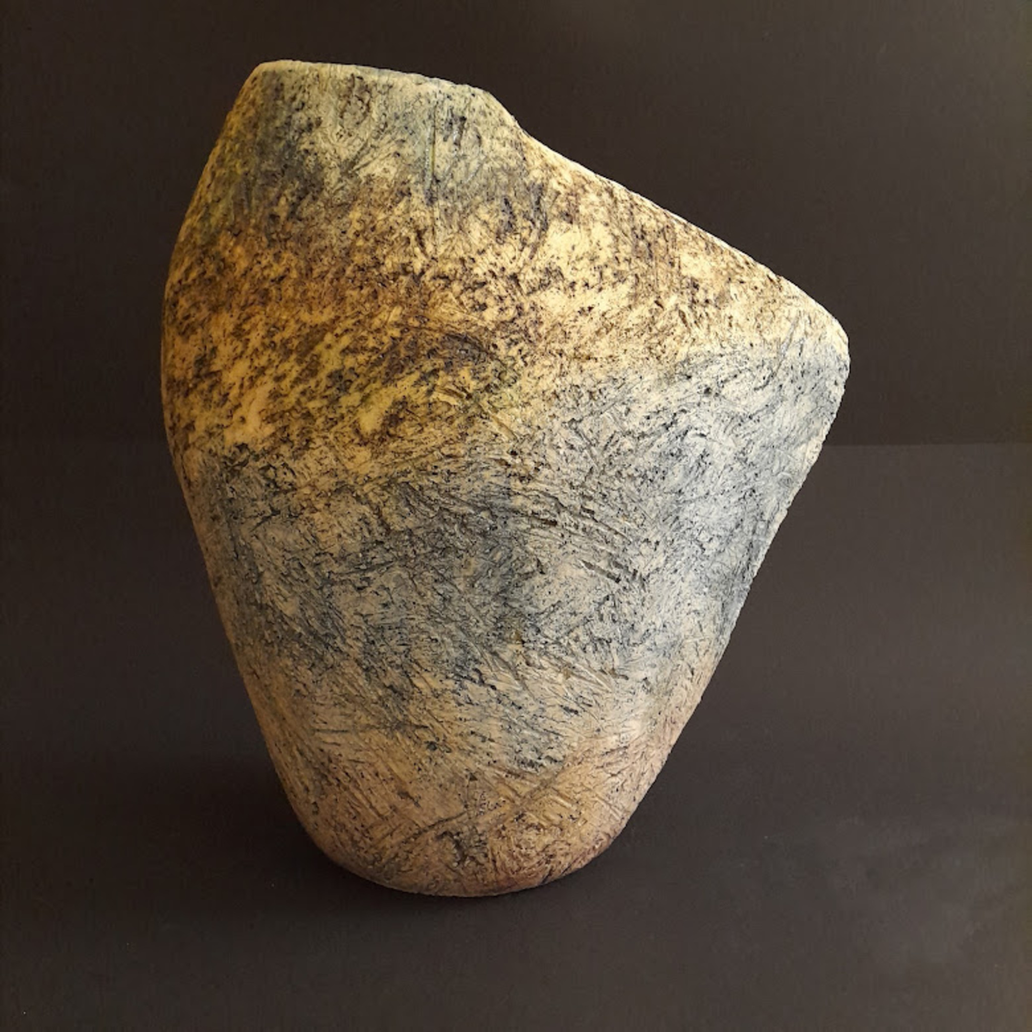 Vaas, ruwe afwerking en ingewassen met oxides. Vaas is niet waterdicht. Eventueel als set van 3 in de verkoop prijs op aanvraag.