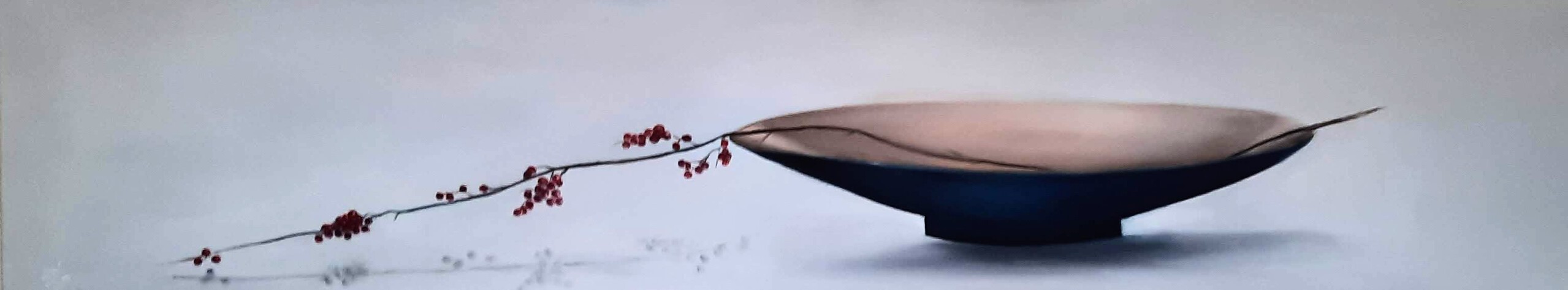 Blauwe schaal in olieverf op paneel 30-90 cm