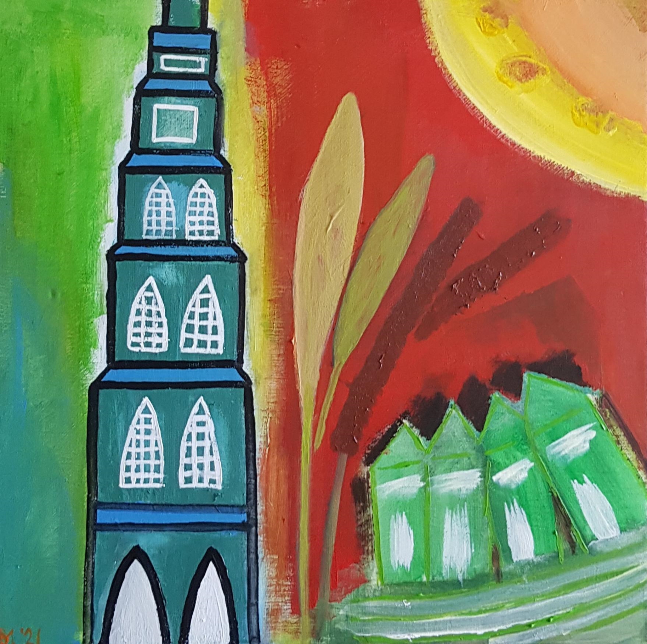 Martinitoren Groningen Kleurrijk Groen Rood Turquoise Geel