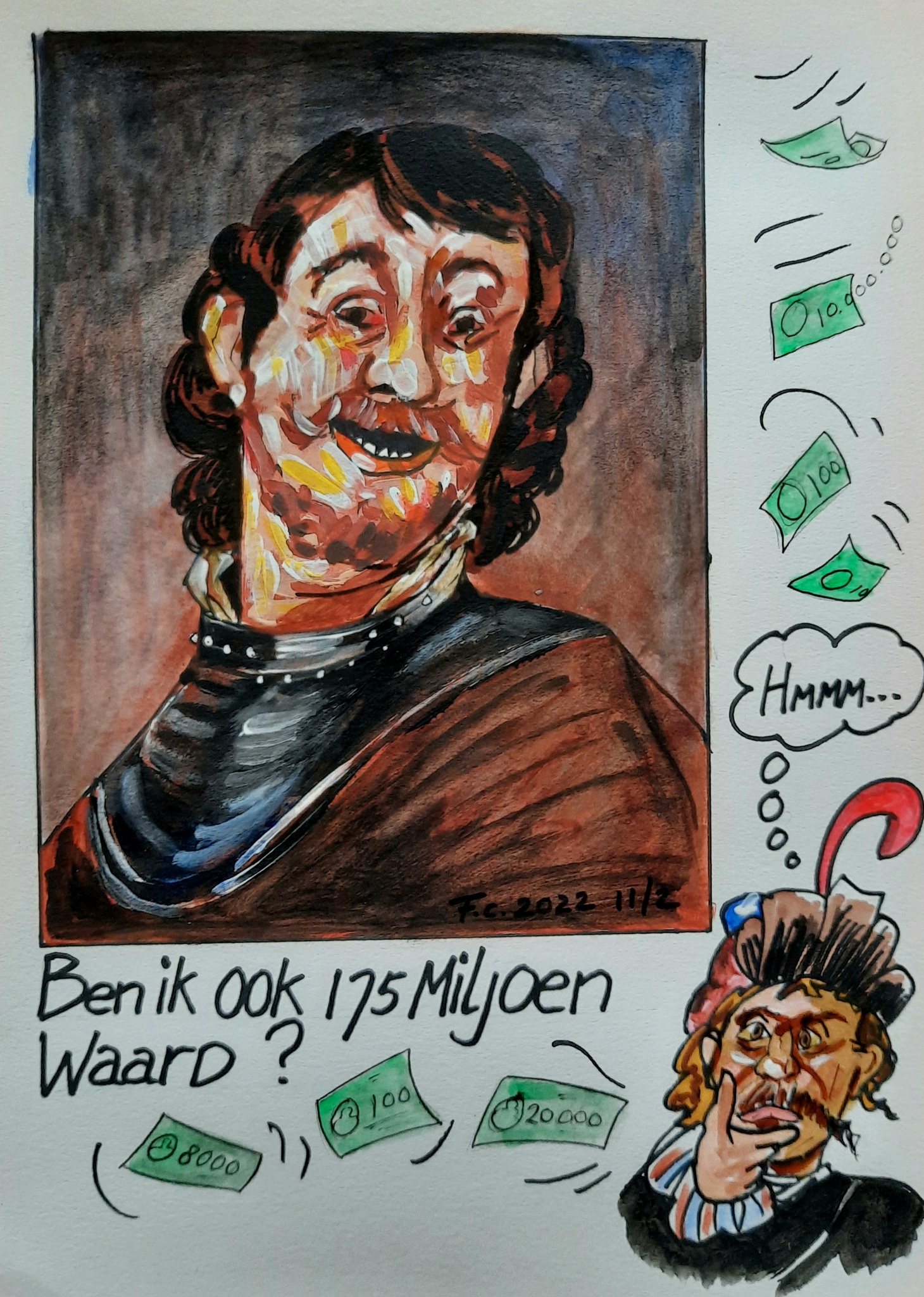 Portret Art Mixed Media Kunst Rembrandt Twijfel Popart Geld Waarde