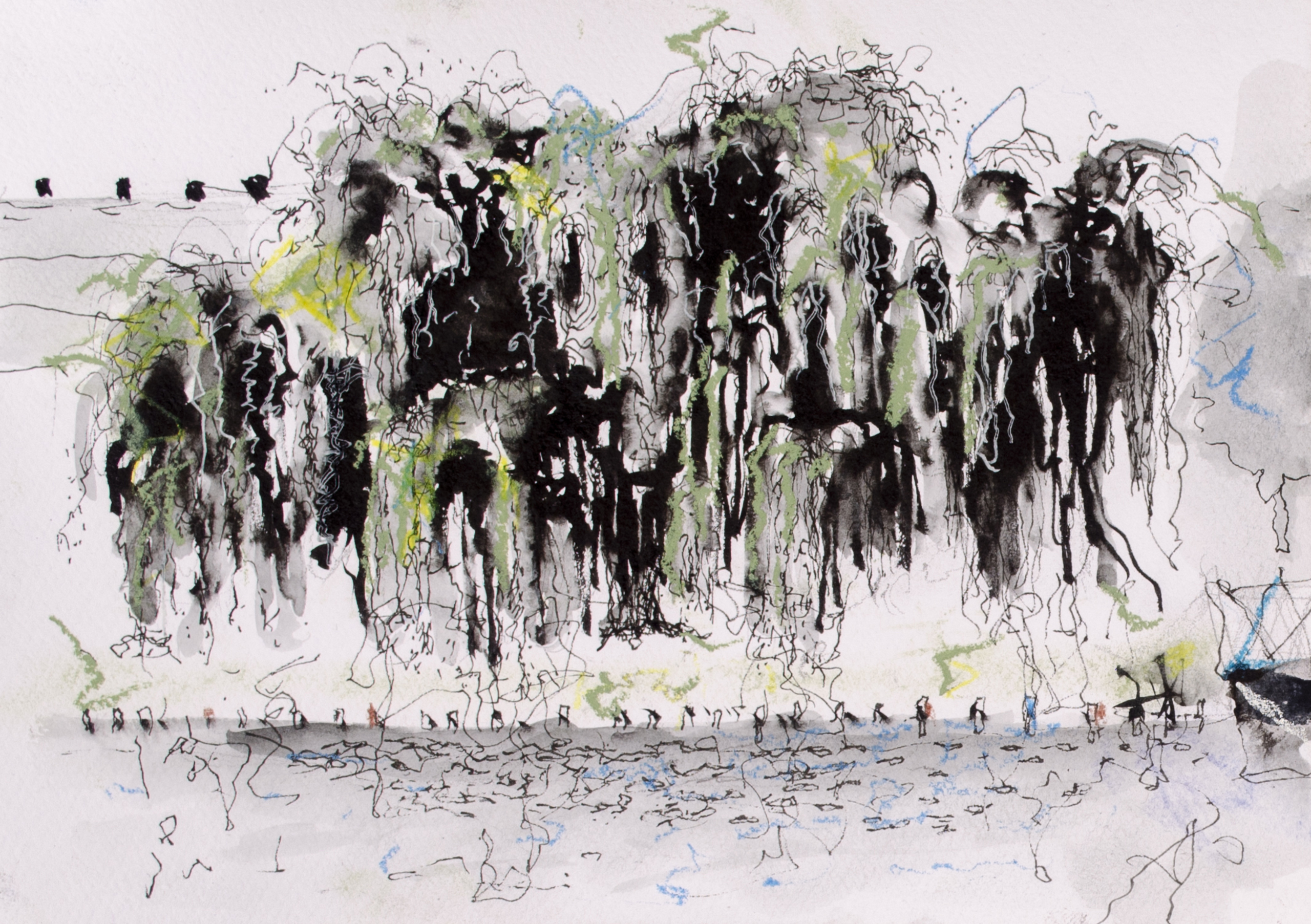 Door vrij te associëren met gedachten en materialen toont Cecile Bank de vluchtigheid van de natuur en tegelijk zijn kracht en kwetsbaarheid. Schilderijen, tekeningen en grafiek.