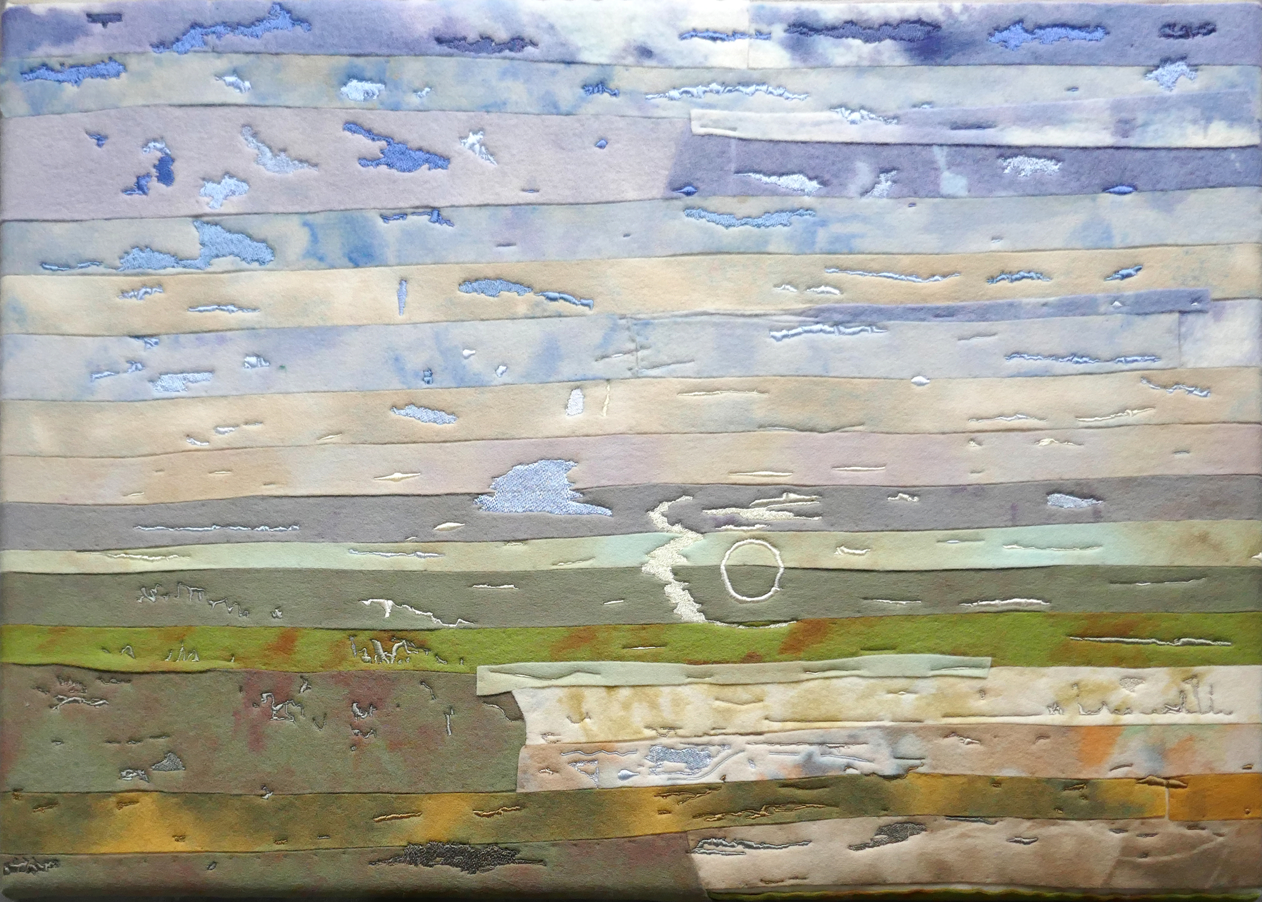 Restanten handgeverfd wolvilt, glansgaren, borduurzijde