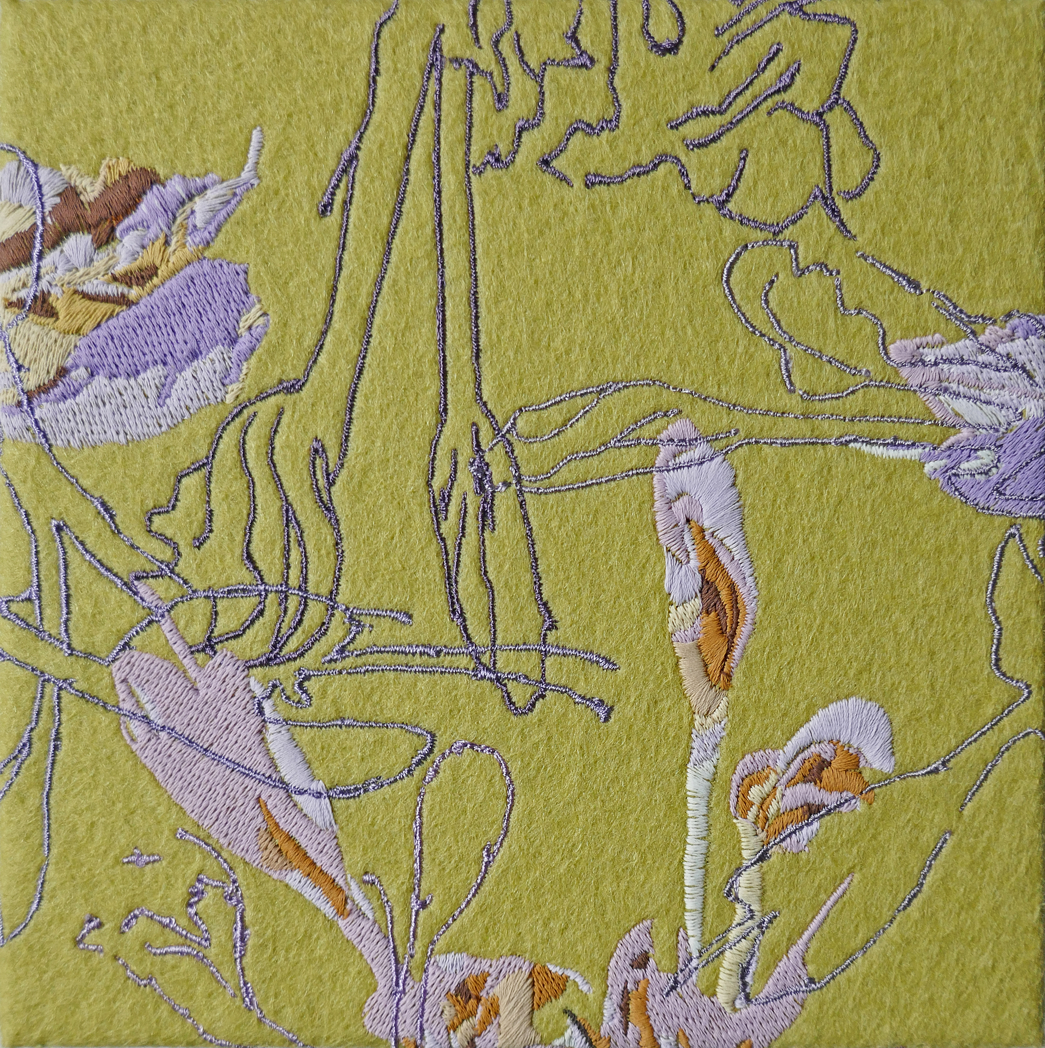 wolvilt, mat en glansgaren, borduurzijde, hout, 5 vlakken bekleed.