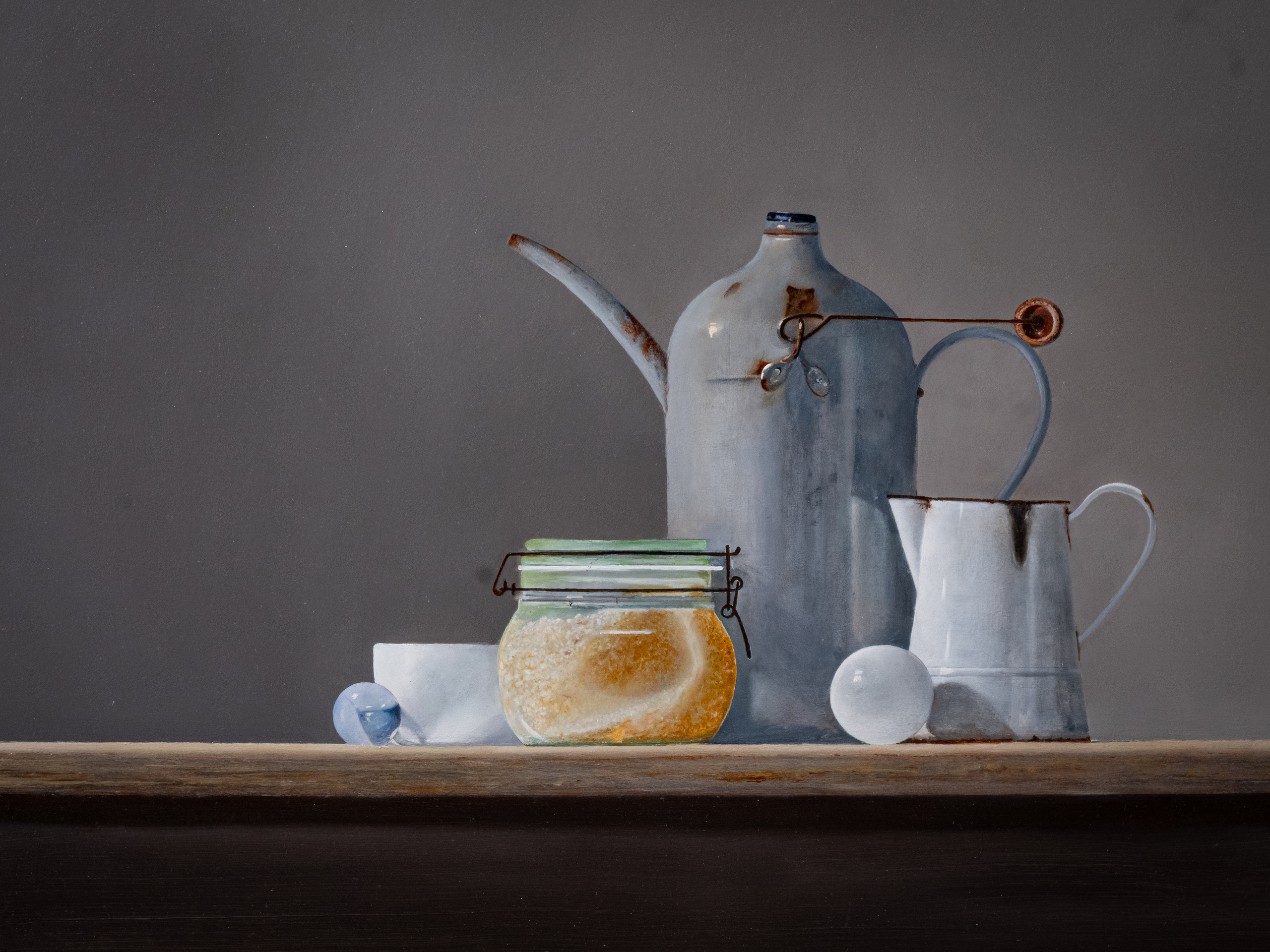 stilleven met grijze oliekan