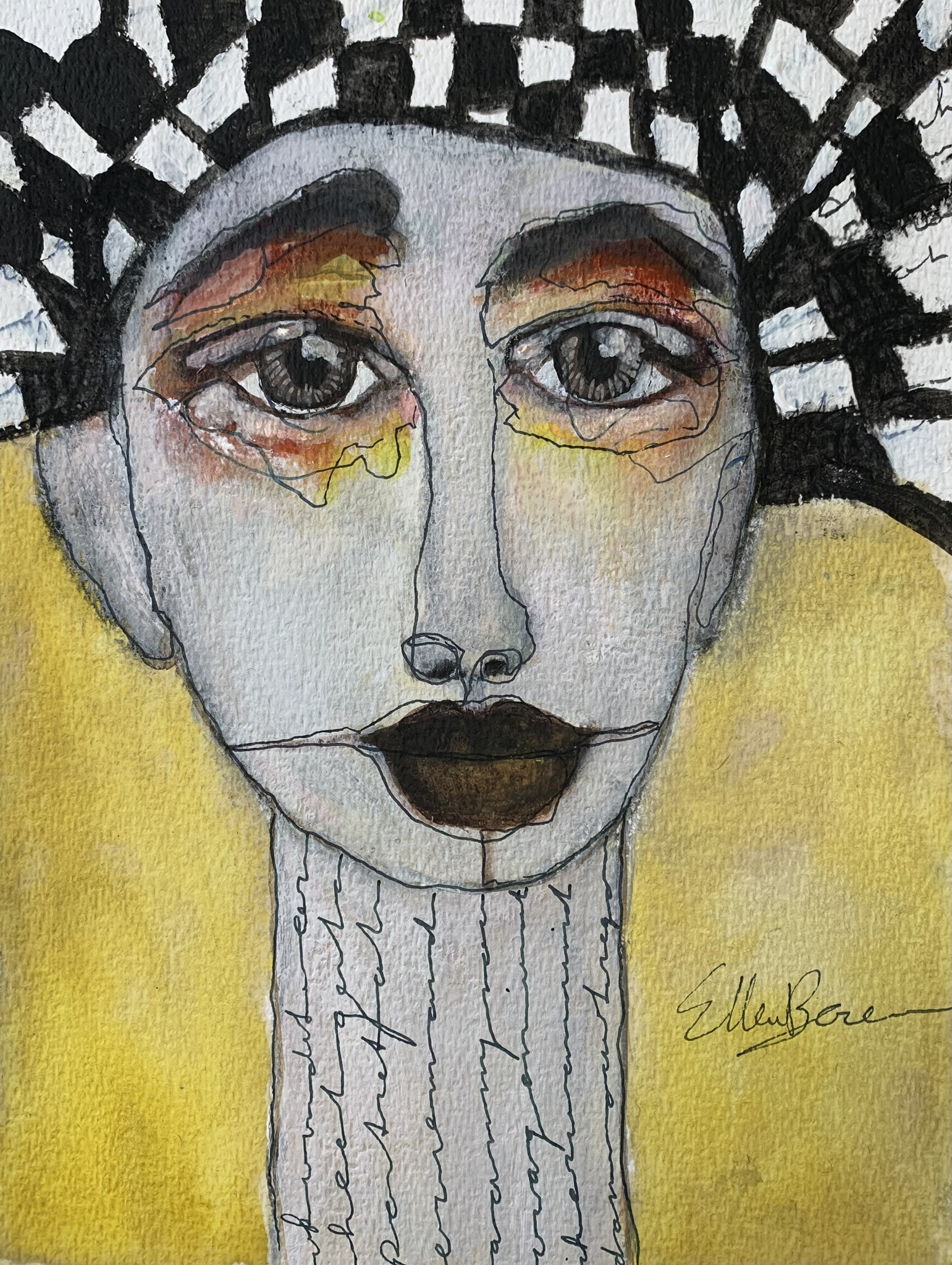 Ellen Berens (1960). Haar sterfelijkheid is wat haar bezighoudt in het leven, het gaat over vooruitgang door loslaten en anders denken en het erkennen van verliezen. Zij is een echte expressionist en staat voor het 'uitdrukken' van gevoelens. Ellen maakt met haar hoofd en handen wat er speelt in haar hart, na de diagnose ongeneeslijk kanker, dit is terug te zien in de schilderijen die ze maakt. Haar schilderijen hebben altijd meerdere lagen, zoals ook haar leven. Haar veelzijdigheid levert verrassende resultaten op. De combinatie van passie, articiteit en haar visie op het leven, maakt dat haar schilderijen symbolisch zijn met sprekende kleuren in harmonie met het onderwerp. Naast ervaringsdeskundige rond kanker is Ellen gediplomeerd in Creatieve therapie en Verlieskunde.