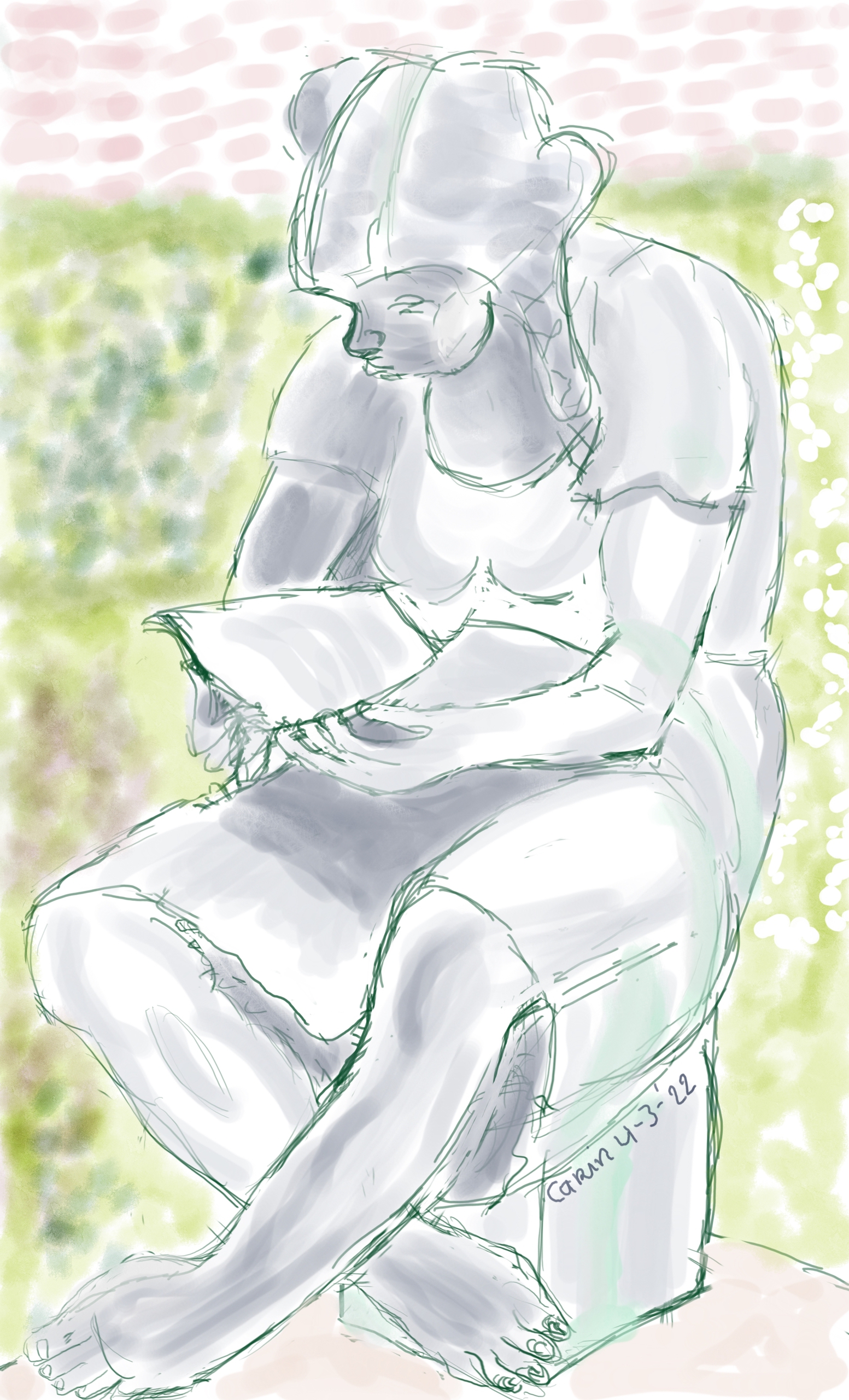 Tekening gemaakt van een bronzen beeld van Thomas Rodr. Tekening gemaakt met SketchbookPro