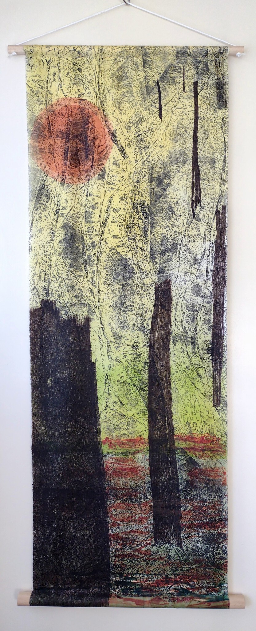 Een kakemono is een Japanse rolprent. De afbeeldingen zijn d.m.v. een drukpers met diverse druktechnieken op zijde afgedrukt. Een kakemono wordt met een stok opgehangen.