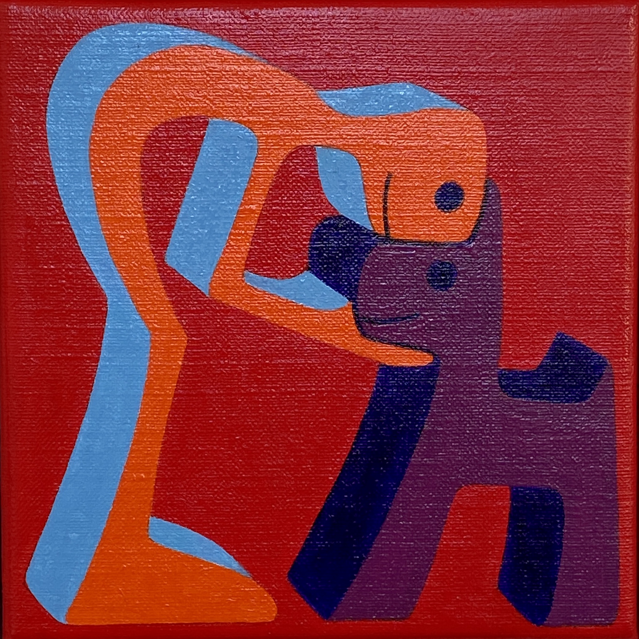 Rood Oranje Blauw Paars Vierkant Mens Hond Surreëel Vriendschap Beeldspraak Vrienden Houden Dierenliefde Beeldtaal