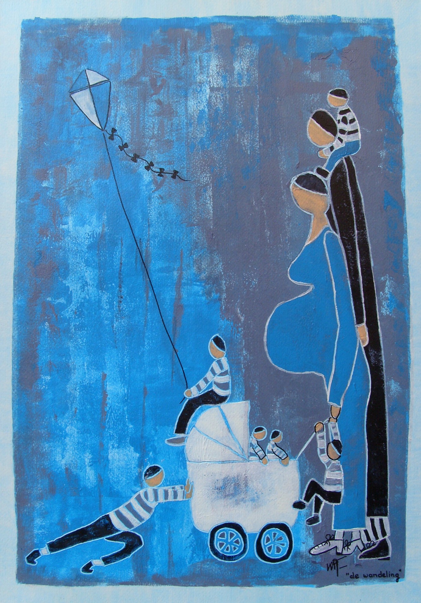 Dit schilderij komt goed tot zijn recht in een verloskundigen praktijk De voorstelling is in natte verf getekend