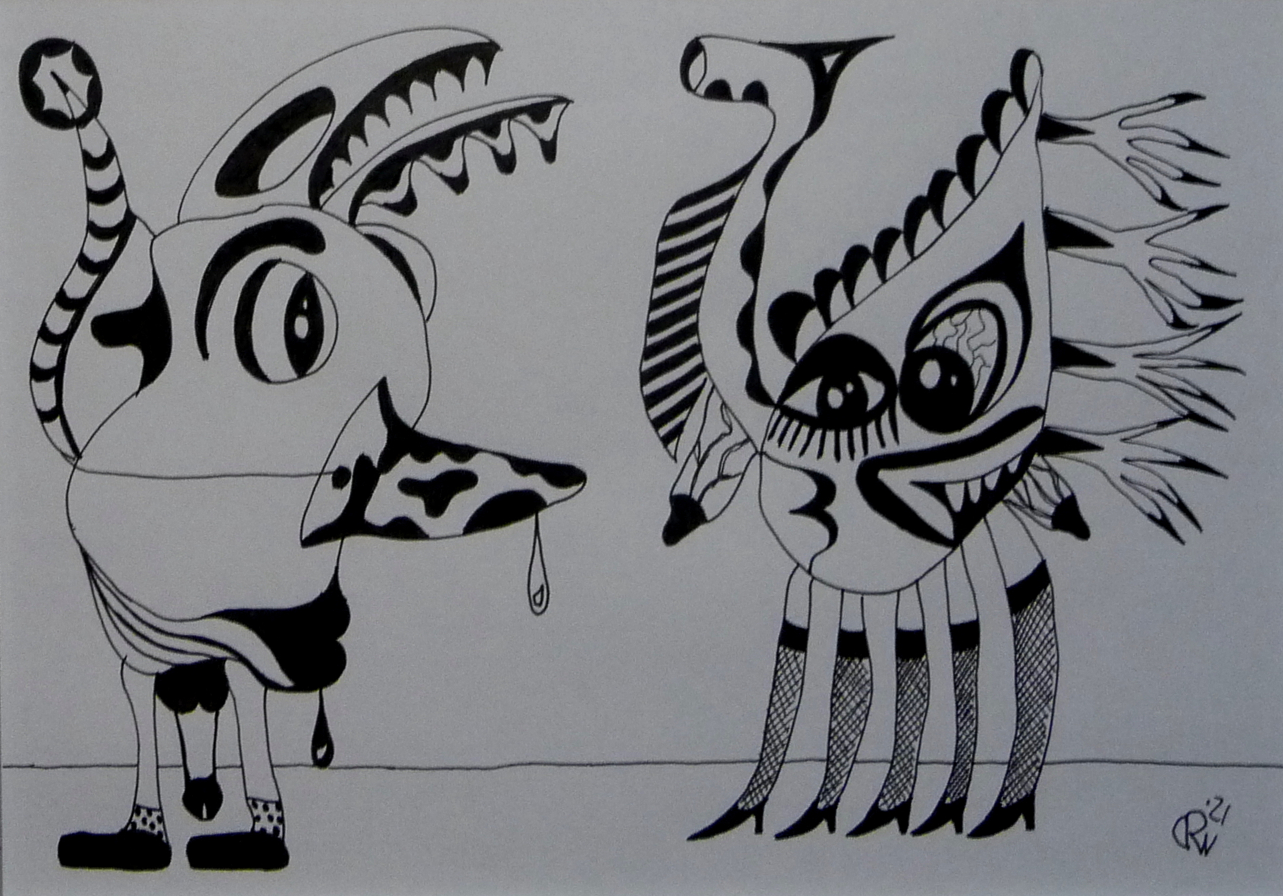Wit Zwart Expressief Art Papier Woman Nude Kunst Dutch Strange Holland Black Girl White De Fantasie Paper Kunstenaar Artist Stift Fantasy Marker Animal Expression Sureel