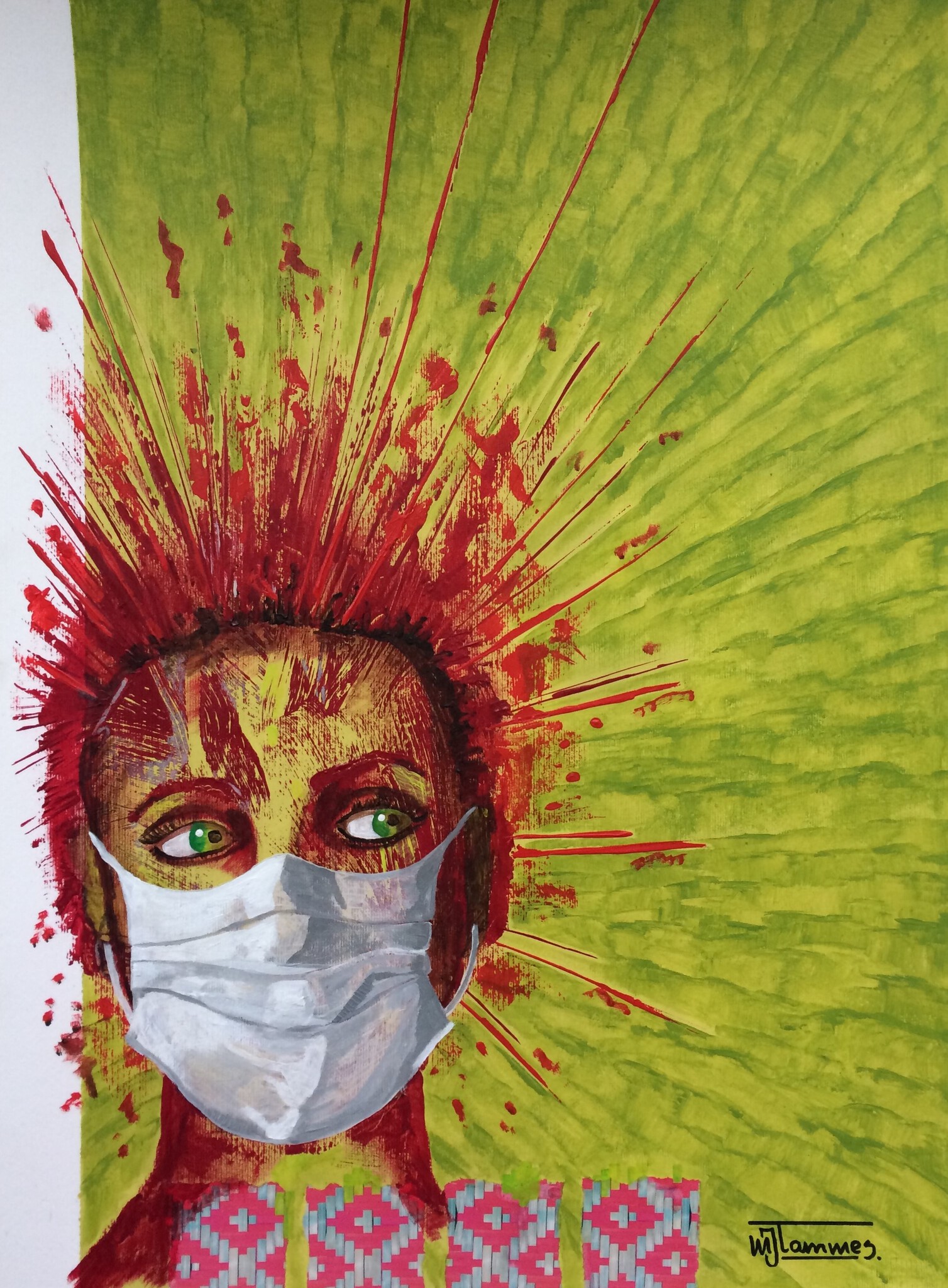 Acryl Papier Mondkapje Corona Gifgroen