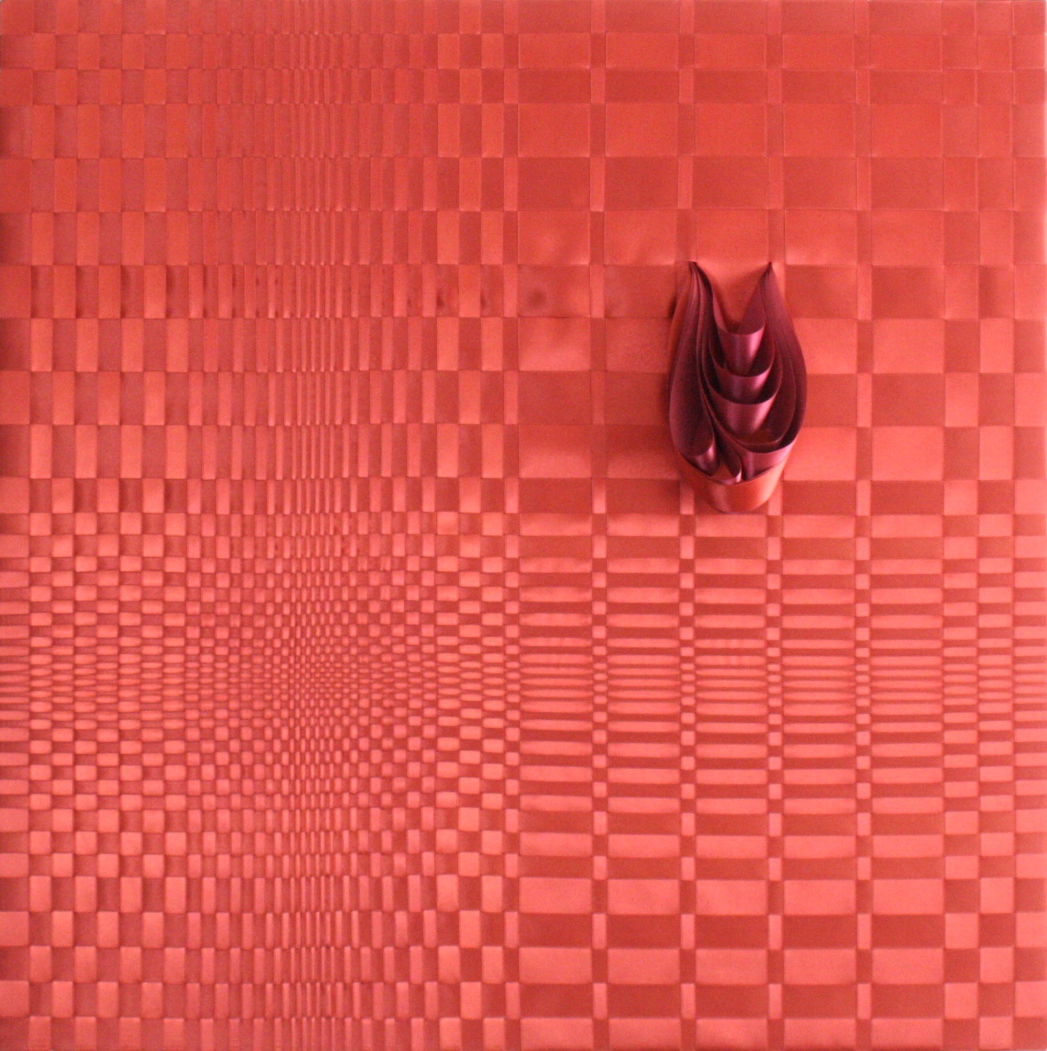 Rood Rose 3d Druppel Vierkant Red Roze Textiel Lint Minimalistisch Roos Bloei Lijnenspel Geometrisch Weven Groei Vlechten Ontluiken Vlechtwerk Moulage Satijnlint