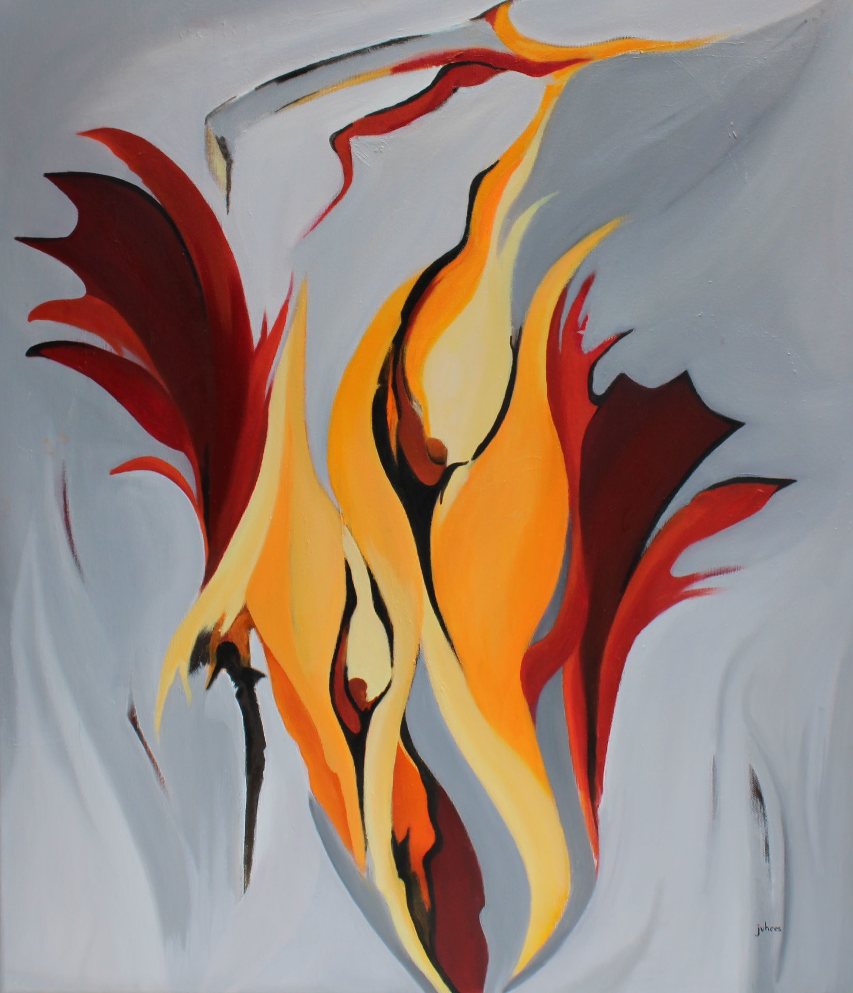 Ik schilder abstract, maar ook realistisch, zoals bloemen en dieren. Verder maak ik tekeningen met potlood en kleurpotlood.