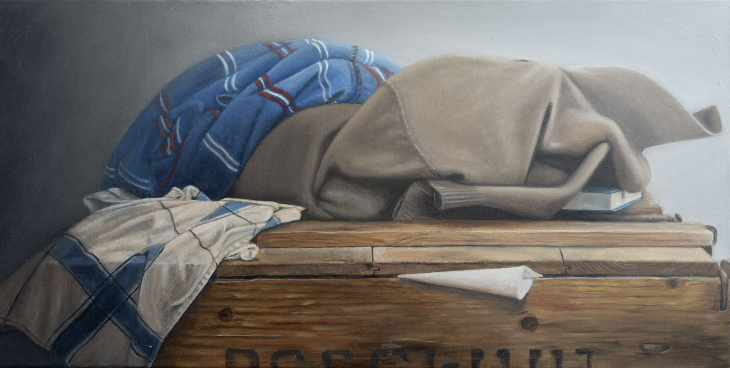 Olieverf Stilleven Kist Theedoek Beschuitkist